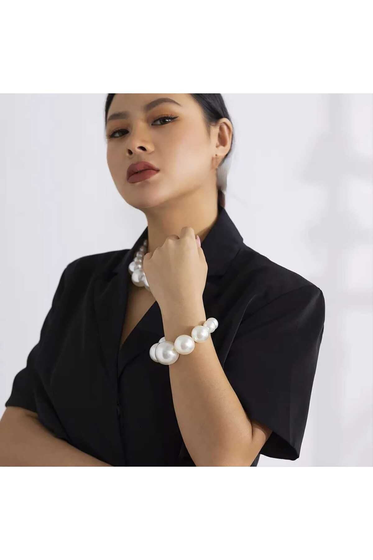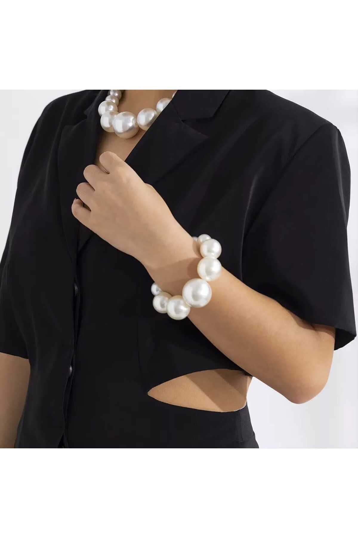 Zarif tasarımıyla dikkat çeken büyük inci kolye ve bileklik seti, şıklığınızı tamamlar