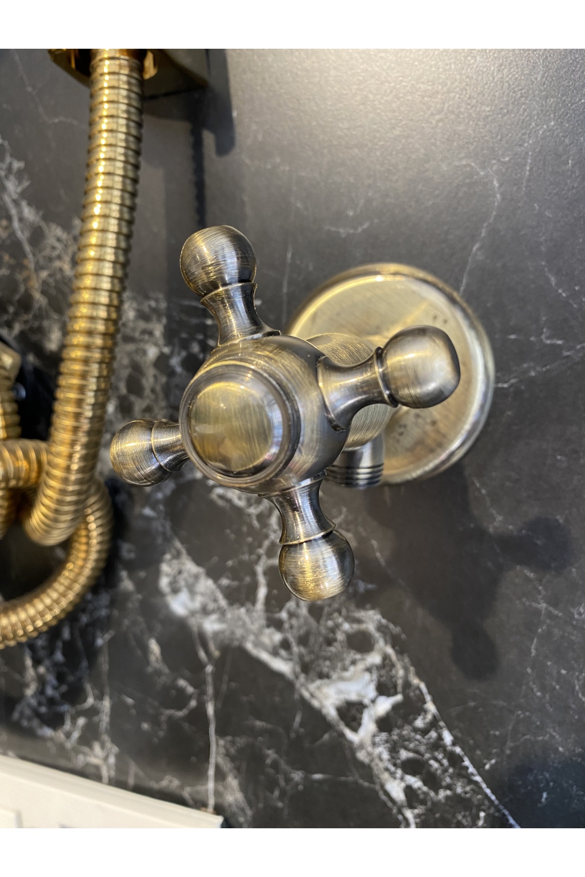 Taharet musluğunun antik modeli, banyonuzun estetiğini zenginleştirir ve dekoratif bir dokunuş sağlar