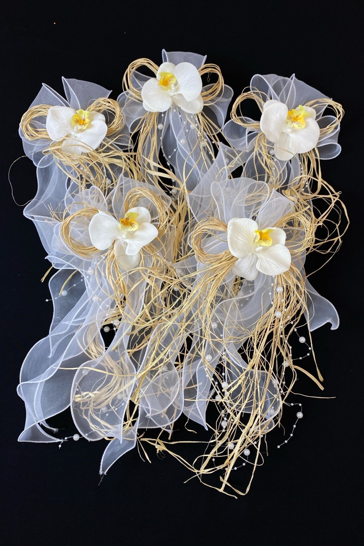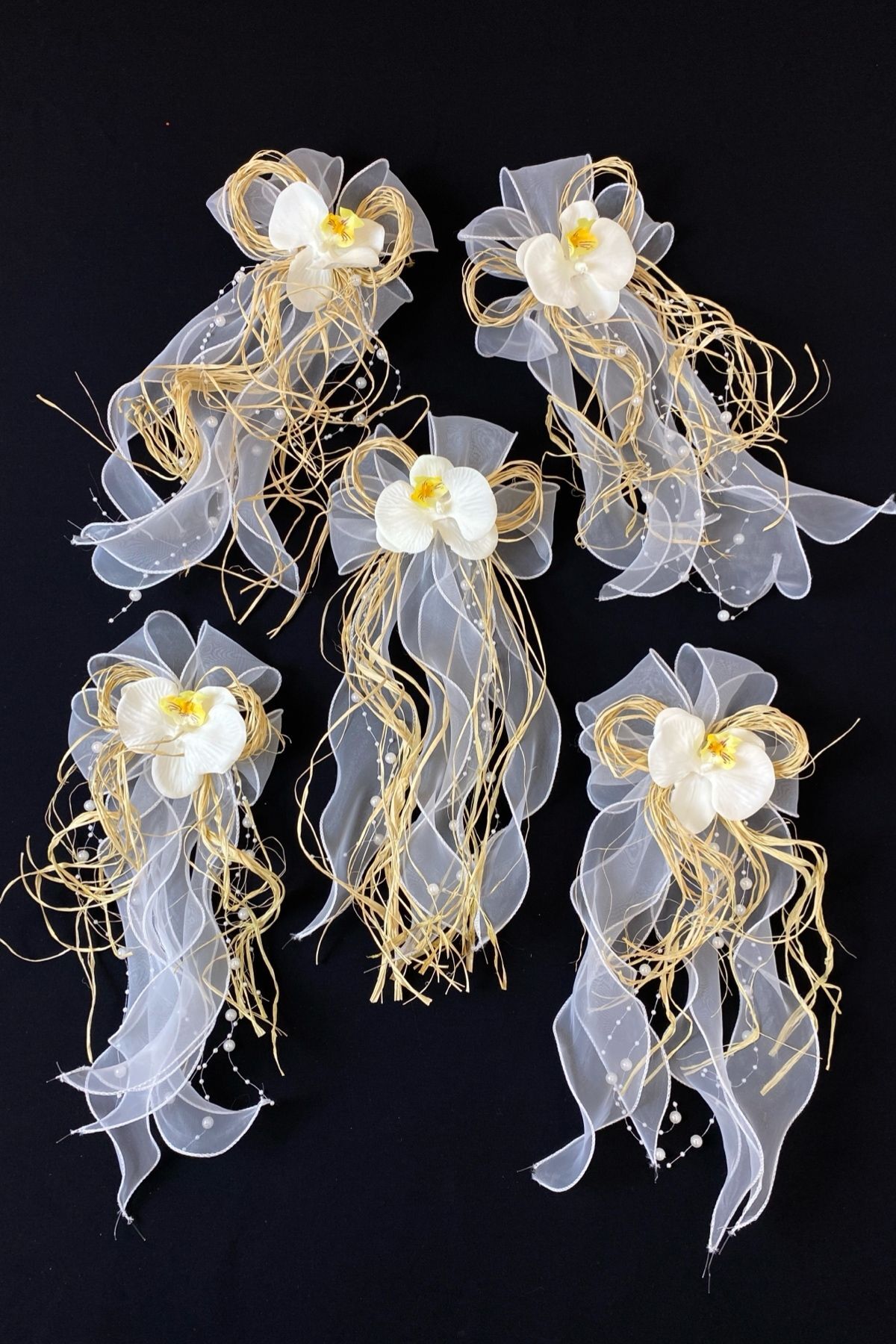 1 Adet Gönderilmektedir. Arka Kısmı İğne Aparatlıdır. Orkide, Kristal Alev, Doğal Rafya ve Sıra İnci Süslemedir.