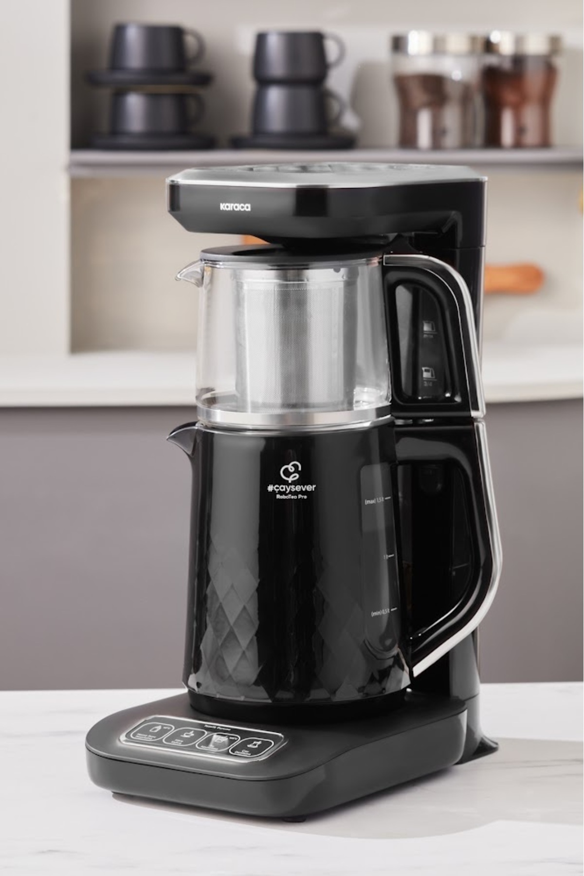 Tüm bunların yanında, çayınız veya kahveniz demlenirken tüm süreç boyunca konuşarak bilgilendirir. 0,8 litre kapasiteli cam demliği ve 1,5 litre kapasiteli su haznesi sayesinde aileniz ve misafirlerinizle çayın keyfine varabilirsiniz.