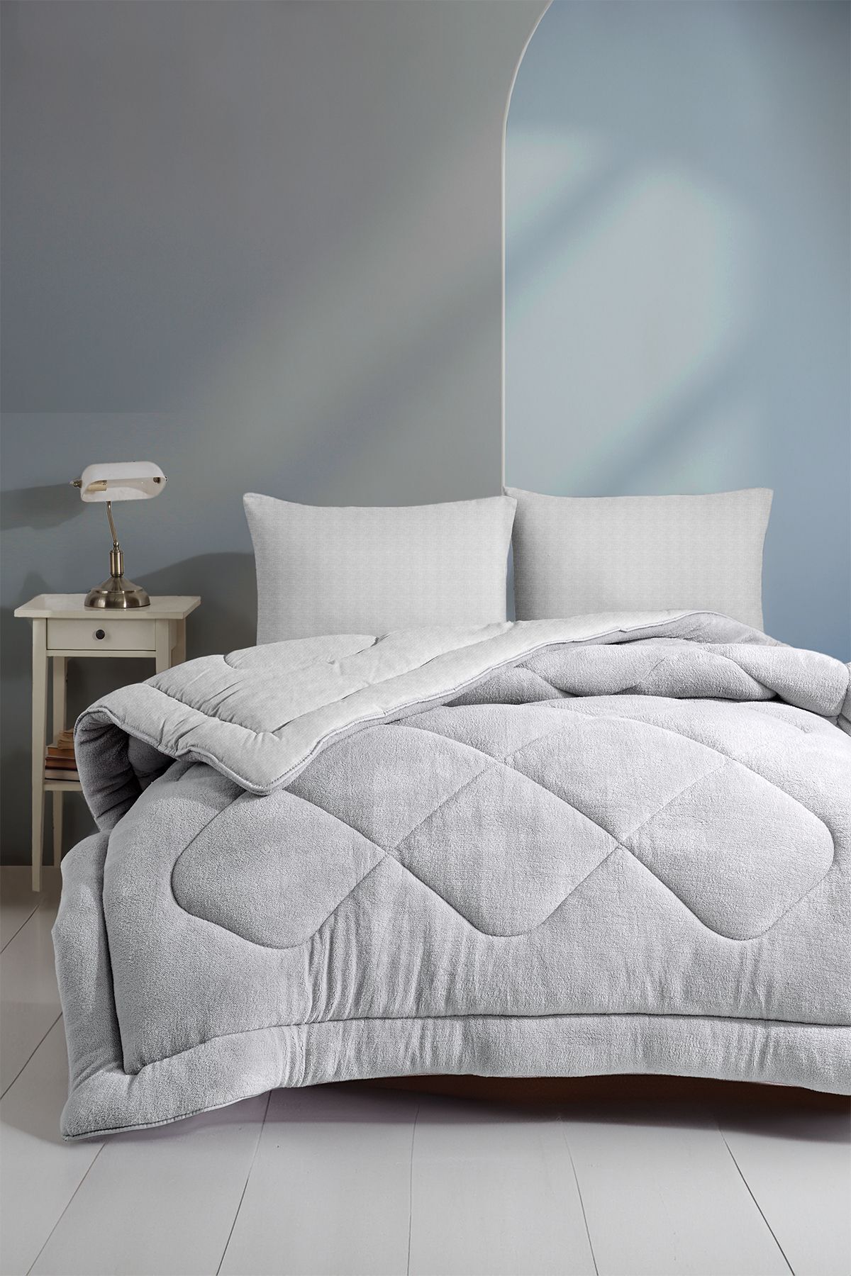Tek Kişilik Gri Çift Taraflı Welsoft Yorgan (155 X 215 CM)