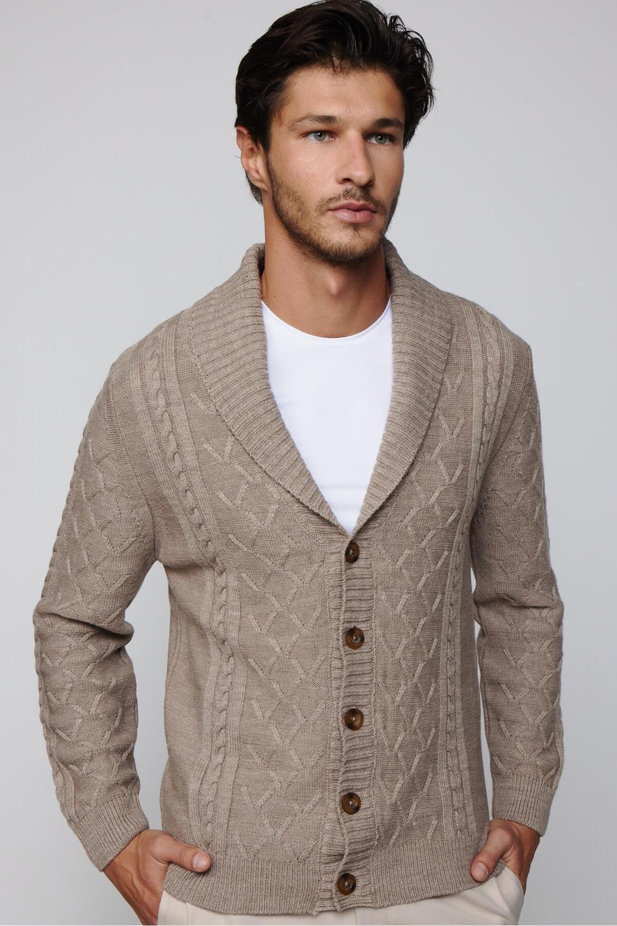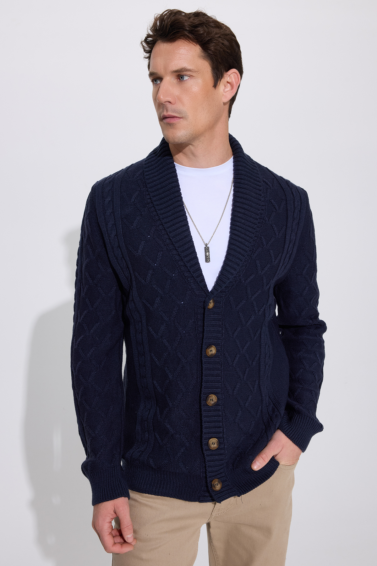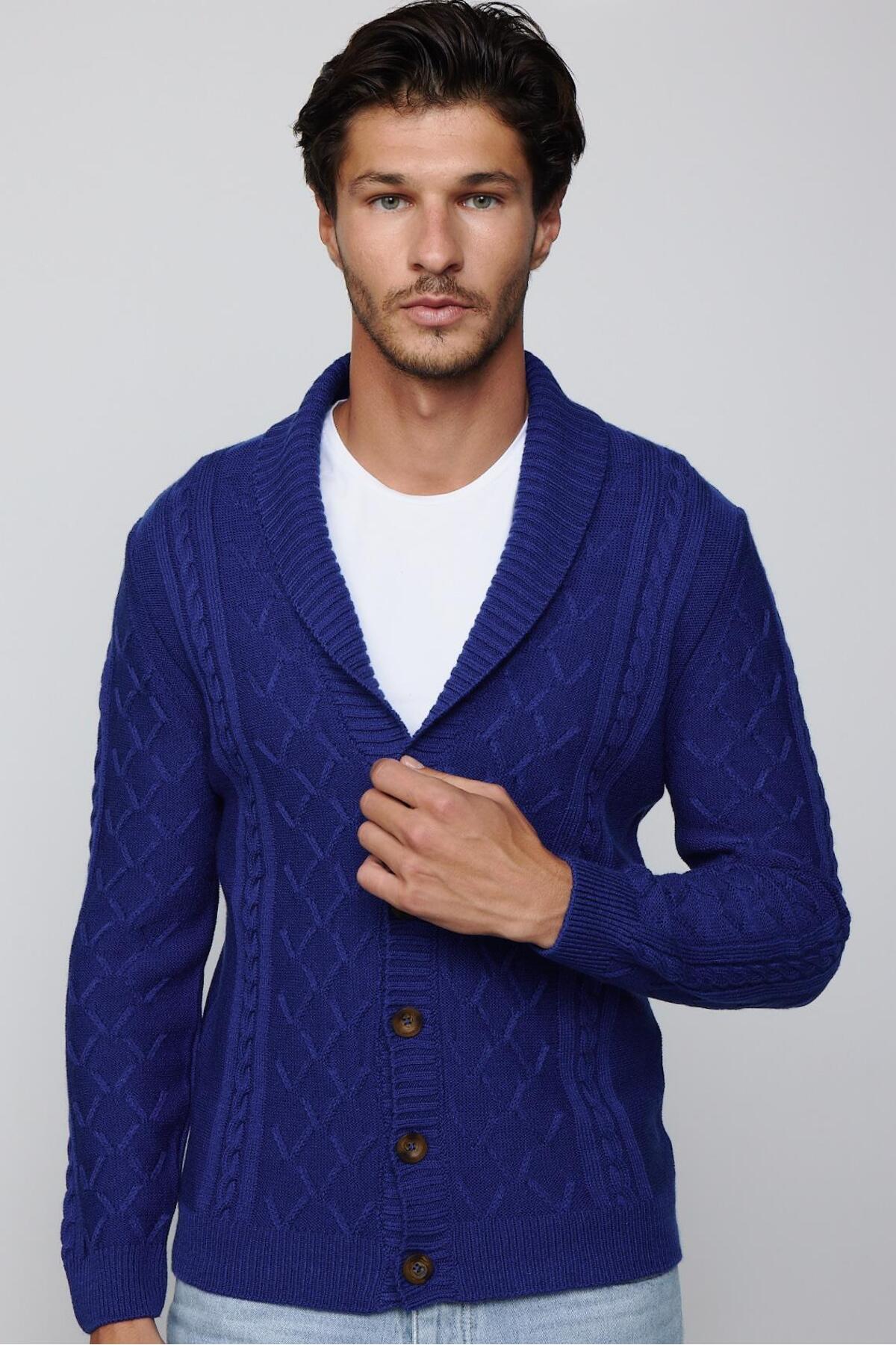 Erkek Slim Fit Dar Kesim Desenli Yumuşak Dokulu Düğmeli Yeşil Hırka