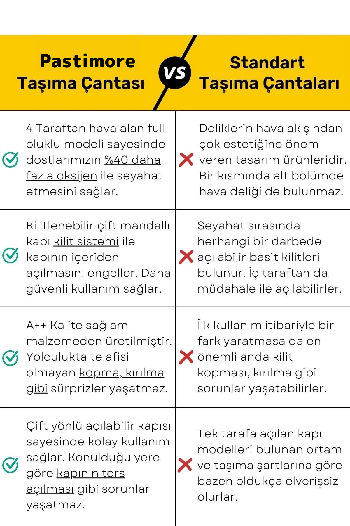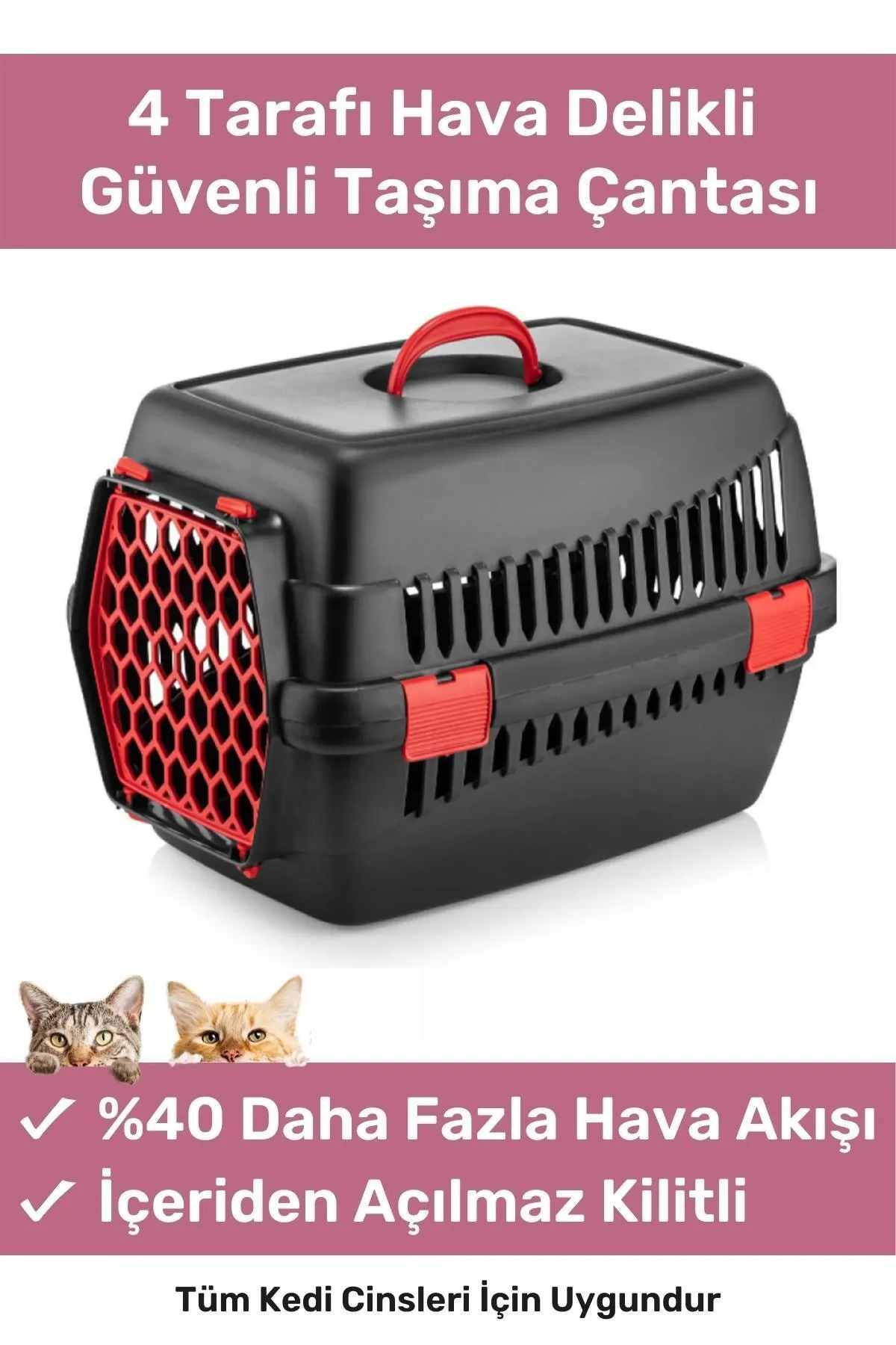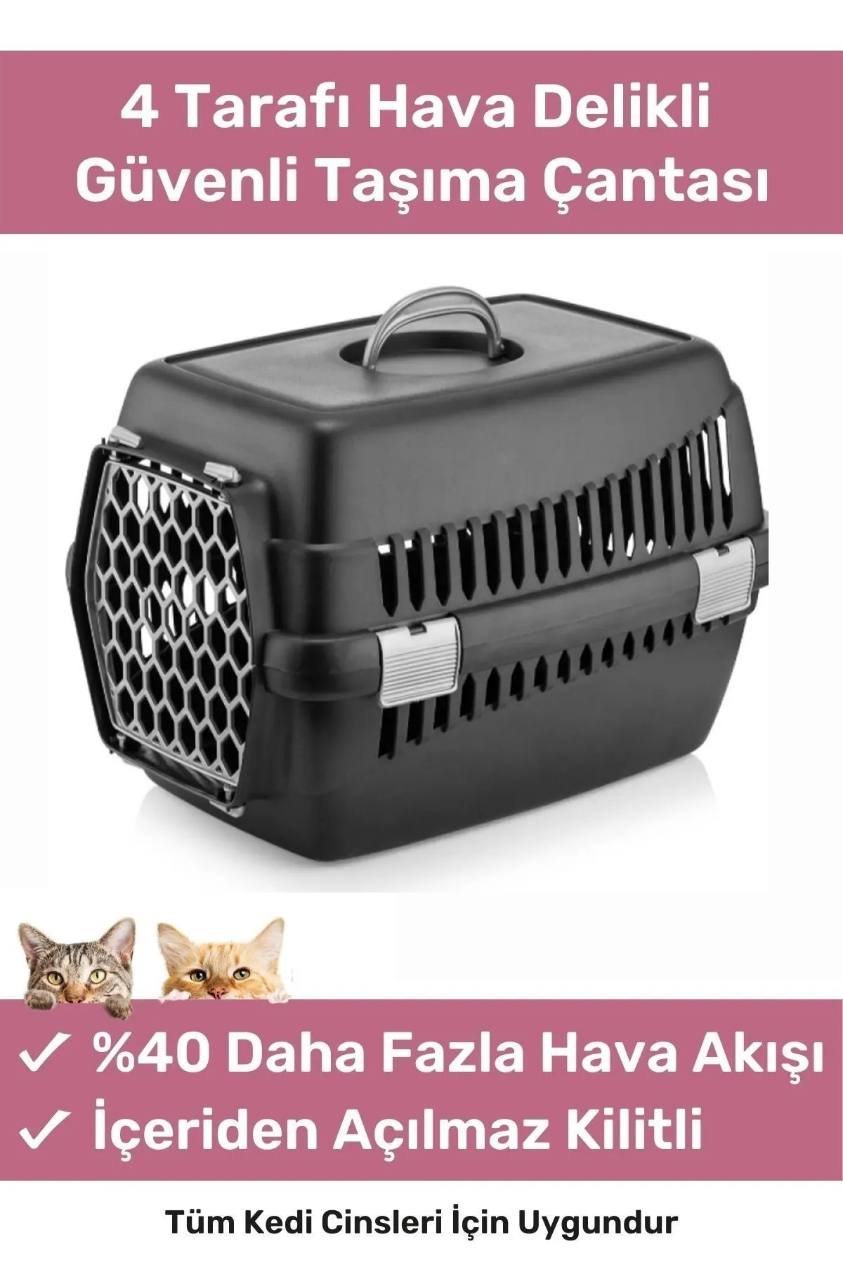 4 Taraftan hava alan ferah model ile hayvan dostlarımızın bol oksijen ile taşıma esnasında rahat etmesini sağlar.