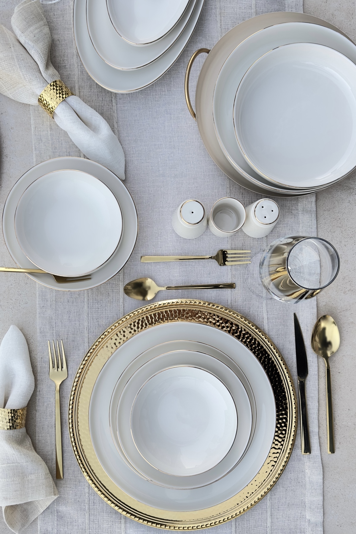 Porselenden Modern Gold Altın Krem 24 Parça 6 Kişilik Yemek Takımı Sunum Seti Porselenden Modern Gold Altın Krem 24 Parça 6 Kişilik Yemek Takımı Malzeme: %100 Porselendir.