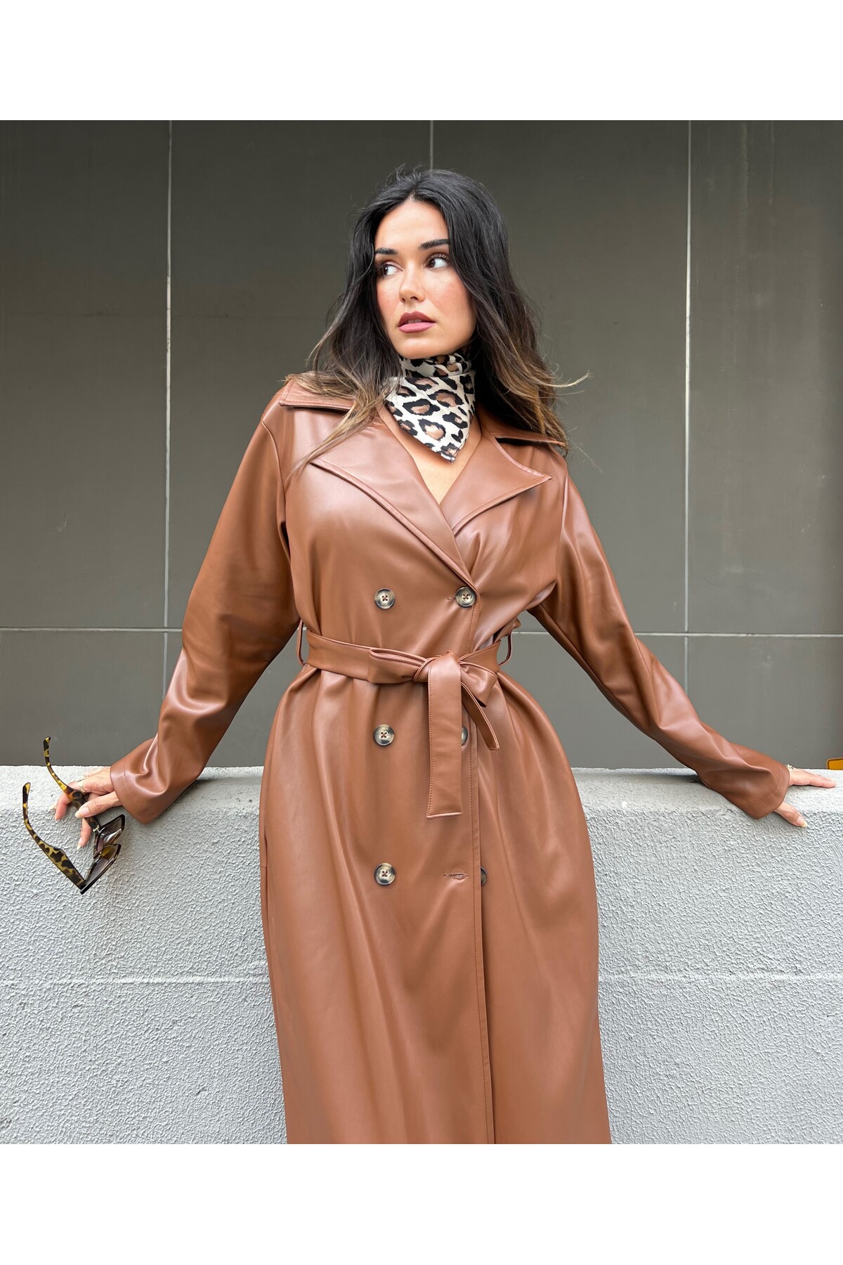 Düğme detayları ise trençkotun sofistike dokunuşlarını sergilerken aynı zamanda pratiklik sunar.
