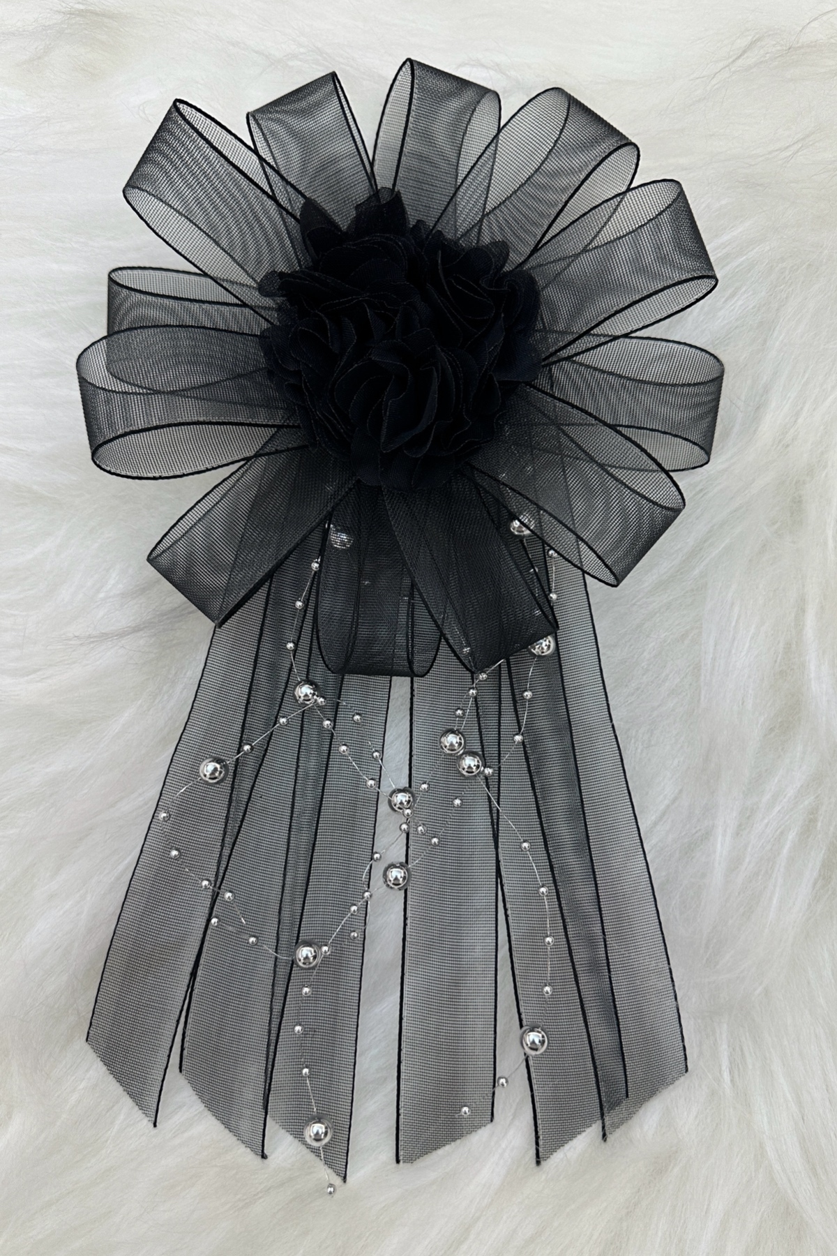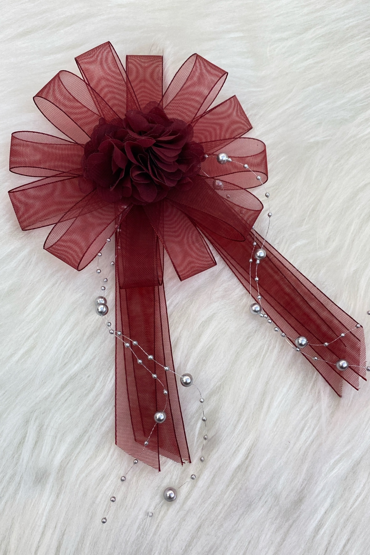 Ortası Üç Boyutlu Lazer Çiçek Süslemeli Sarkıt İncili Bohça Süsü.