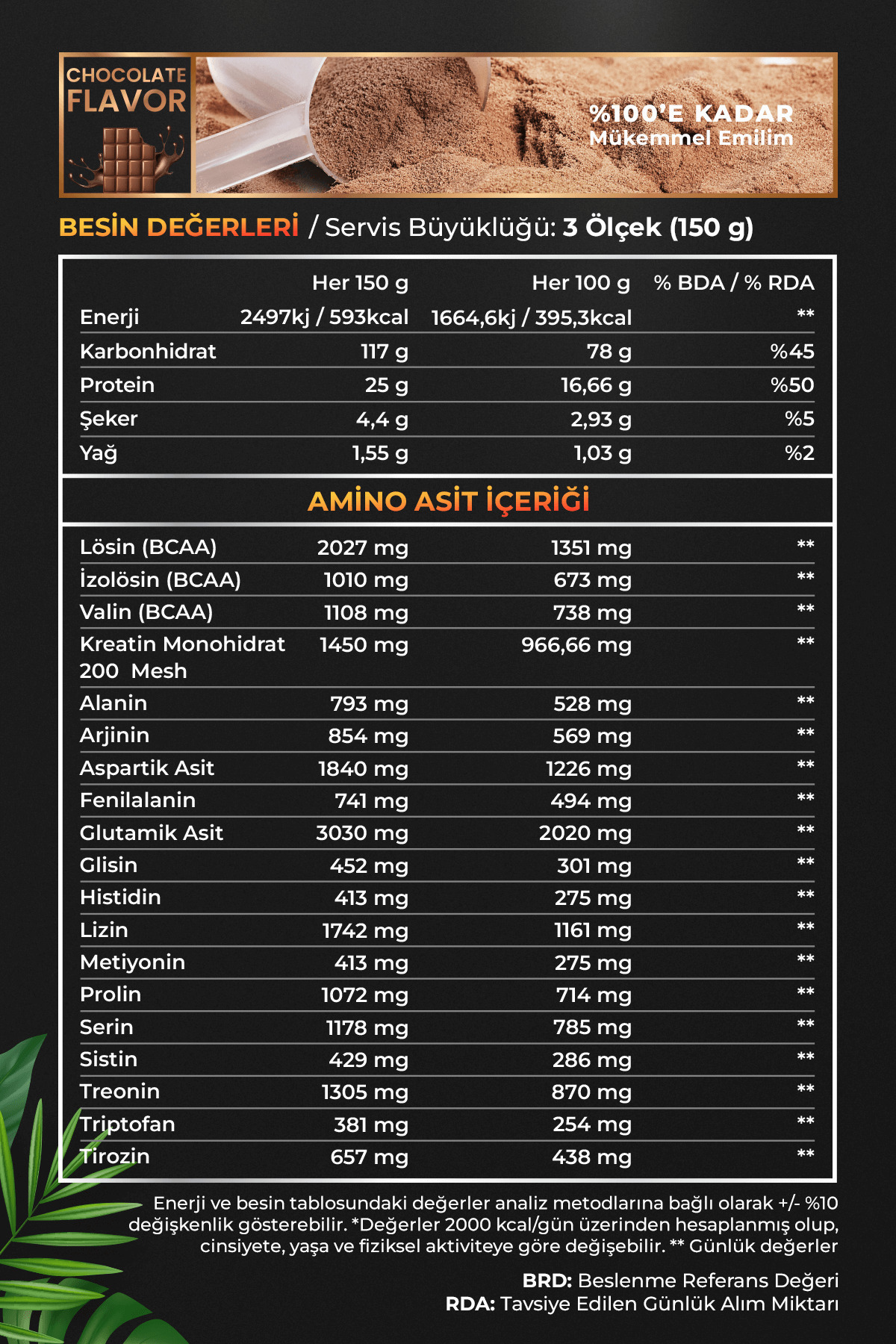 Hacim kazanmanız için karbonhidrat ve proteine ek olarak arjinin, ornitin, lizin, glutamin, çinko, magnezyum, B6 vitamininden oluşan bir karışıma sahiptir.
