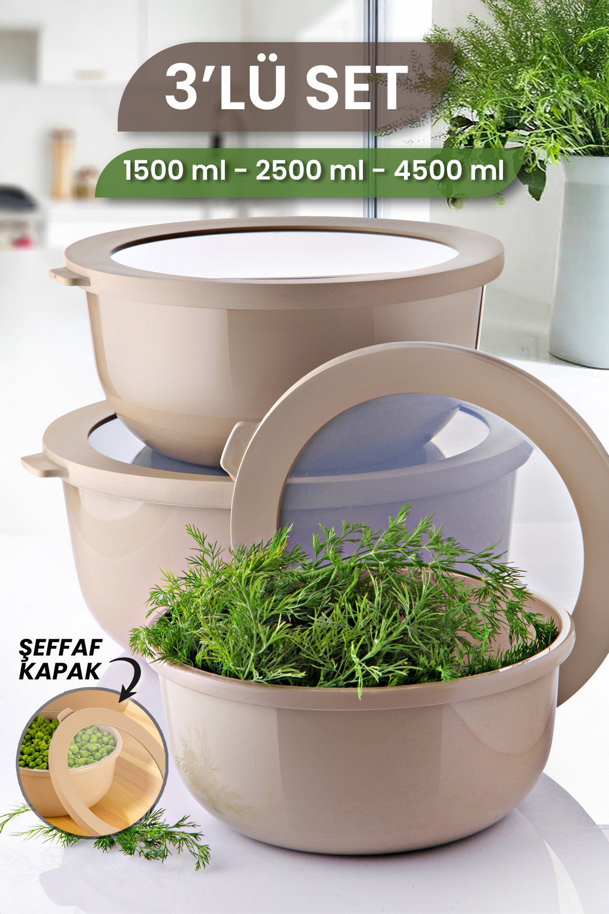 Üç farklı boyutta (1500 ml, 2500 ml ve 4500 ml) erzaklarınızı rahatlıkla depolayabileceğiniz Ayza serisi saklama kabı seti ile mutfakta düzeni koruyun.