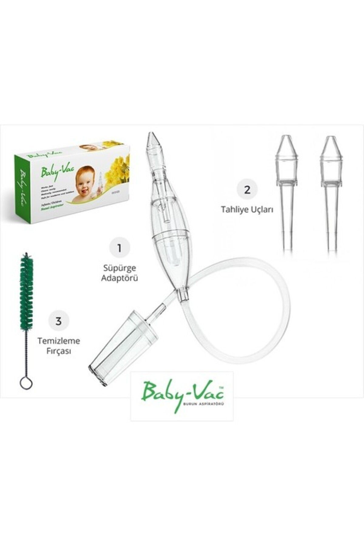 Dünya'daki en iyi ve en ekonomik burun aspiratörlerinden biri olan Baby-Vac, uç değiştirme derdi olmadan ömür boyu kullanılabilmektedir.