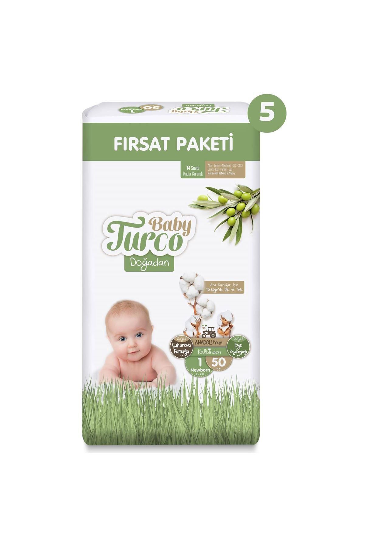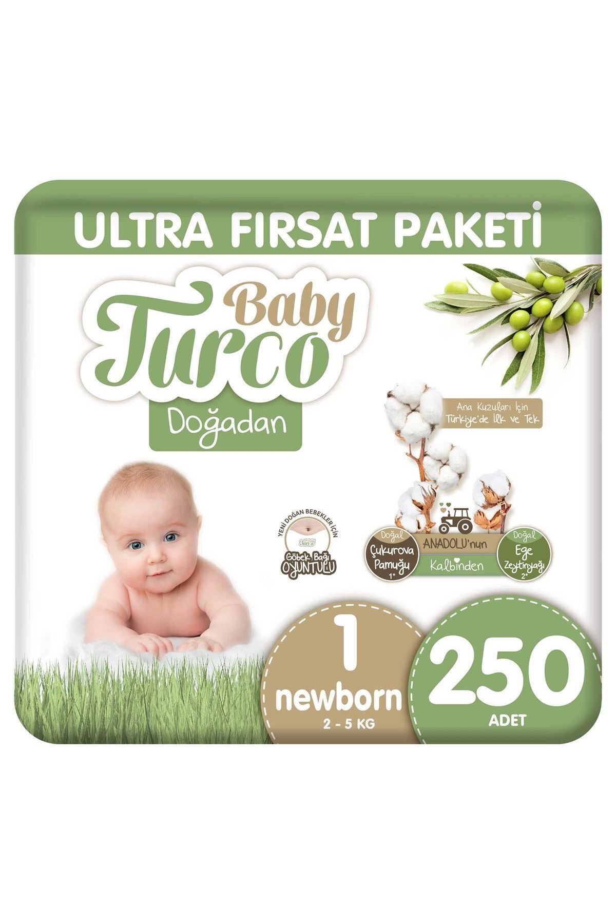 Baby Turco Doğadan Ultra Fırsat Paketi Bebek Bezi, 1 Numara Newborn, 250 Adet
