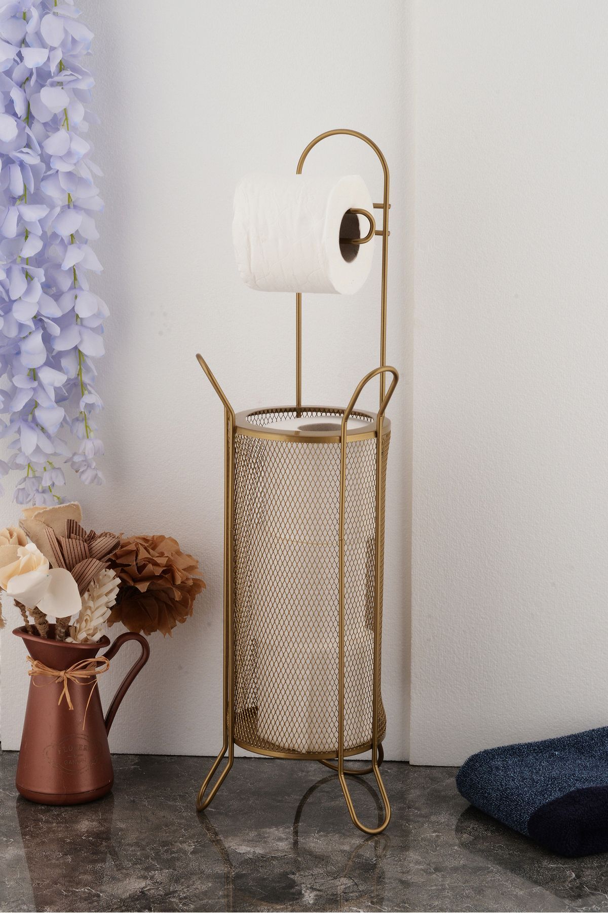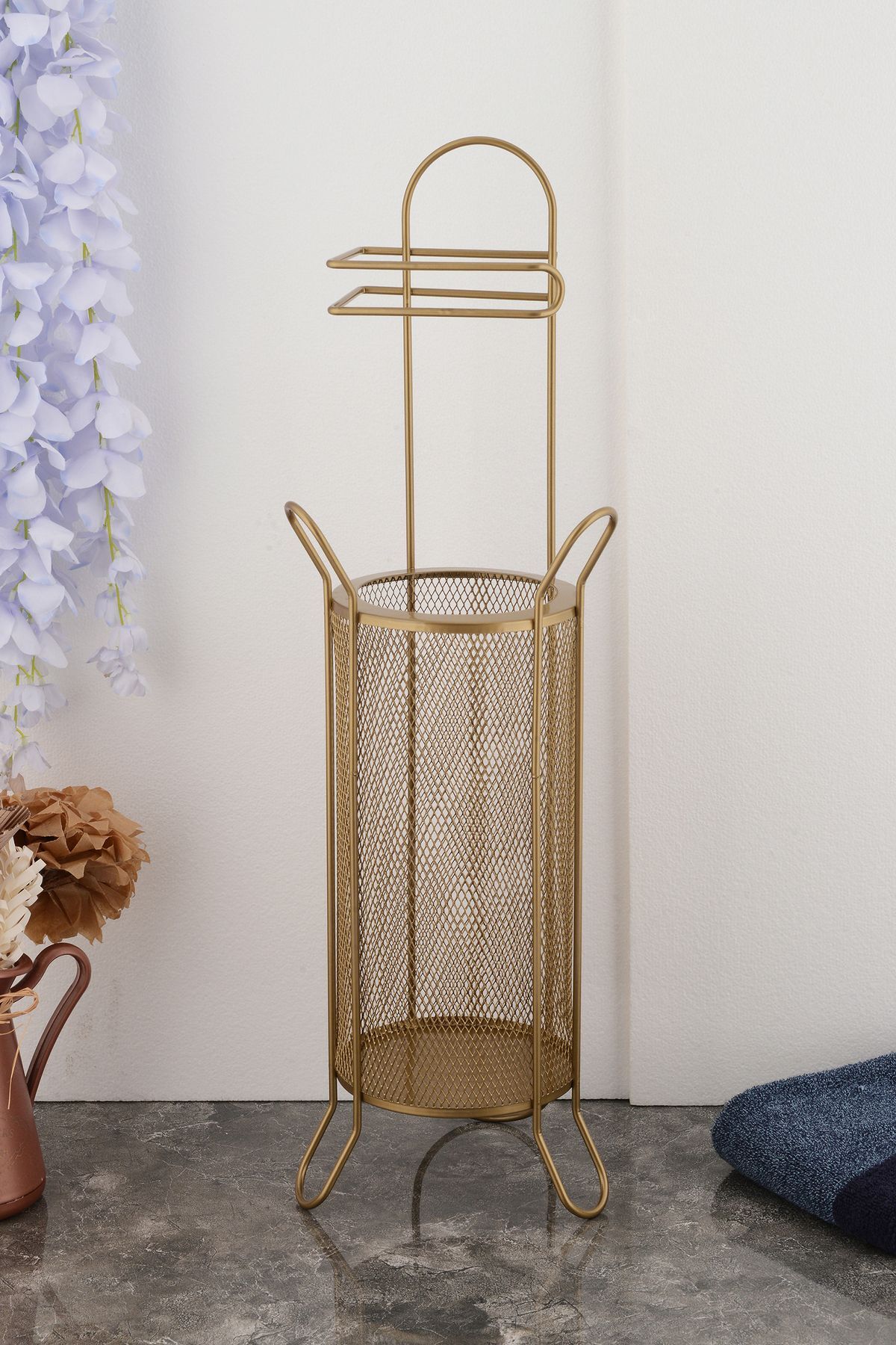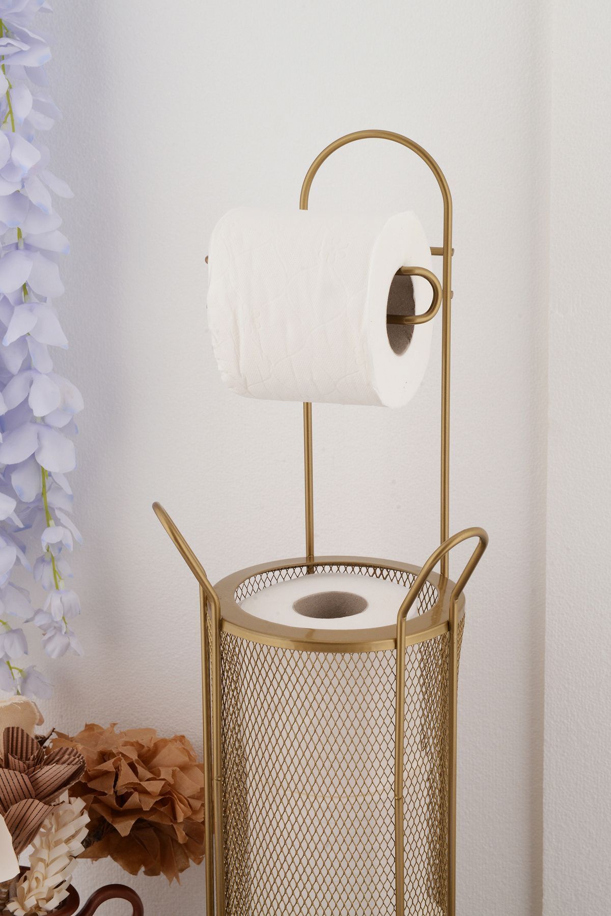 Ürün ölçüleri: toplam yükseklik: 64 cm Ürün çapı: 15 cm Kâğıt koyulan sepet yüksekliği: 30 cm Raf arası ölçüsü 17 cm Dayanıklı metal malzeme kullanımı, uzun ömürlü ve sağlam bir yapı sunar