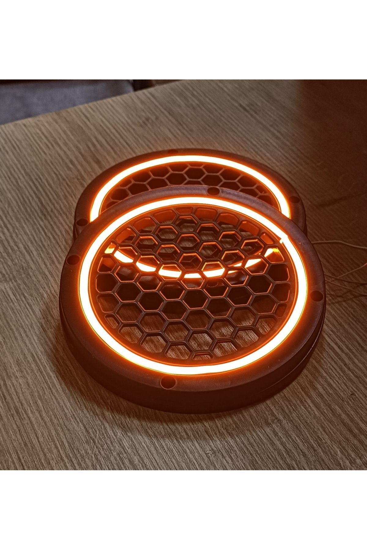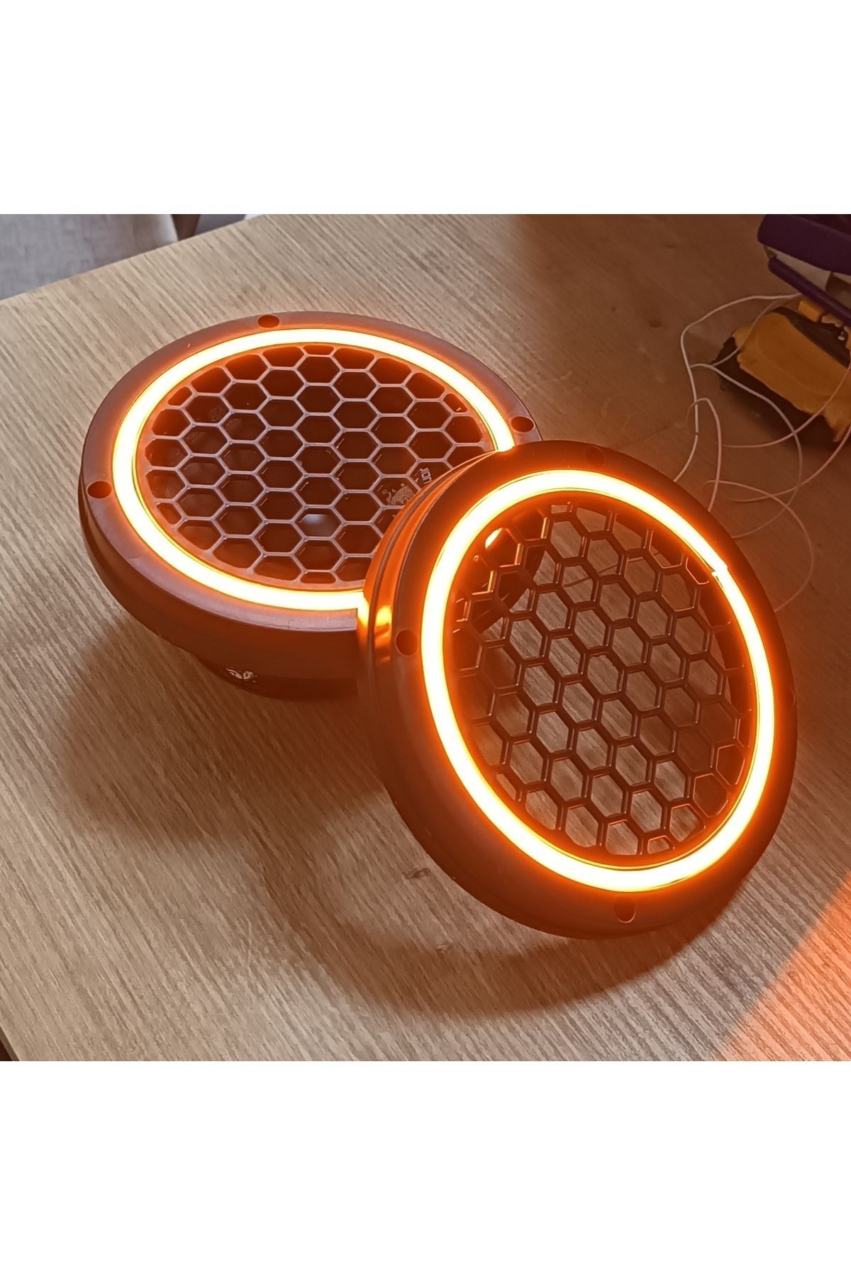 Yuvarlak şekliyle klasik hoparlör tasarımını modern bir dokunuşla birleştirir ve aracınızın iç mekanına estetik bir uyum sağlar