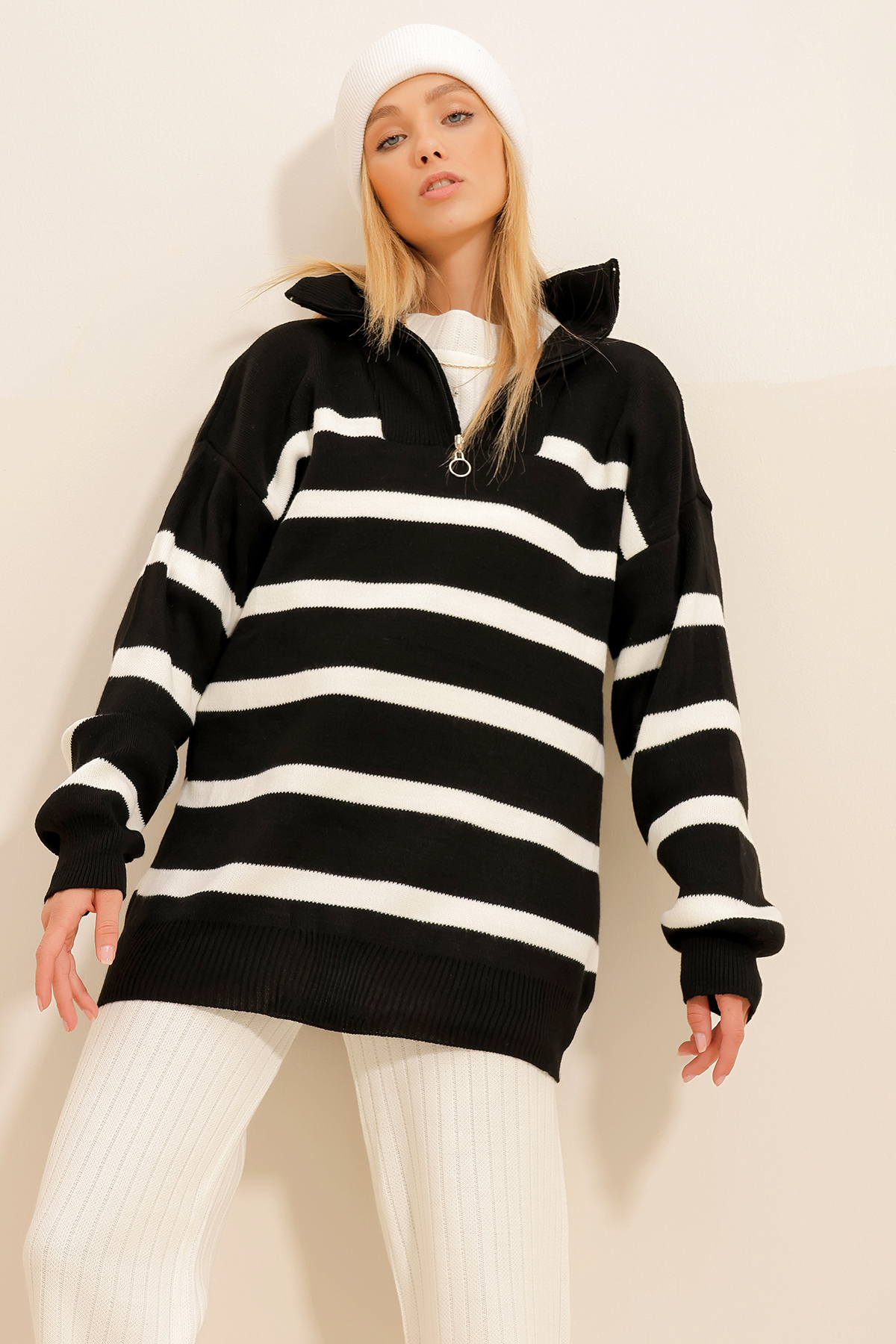 Kadın Regular Fit Fermuarlı Yaka Selanik Kumaş Kazak, Hem Rahatlığı Hem De Şıklığı Bir Araya Getirerek Soğuk Günlerde Tarzınızı Ön Plana Çıkarıyor. Klasik Kesimi Ve Özel Selanik Kumaşıyla Sizi Sıcacık Tutarken Stilinizi De Yansıtıyor.
