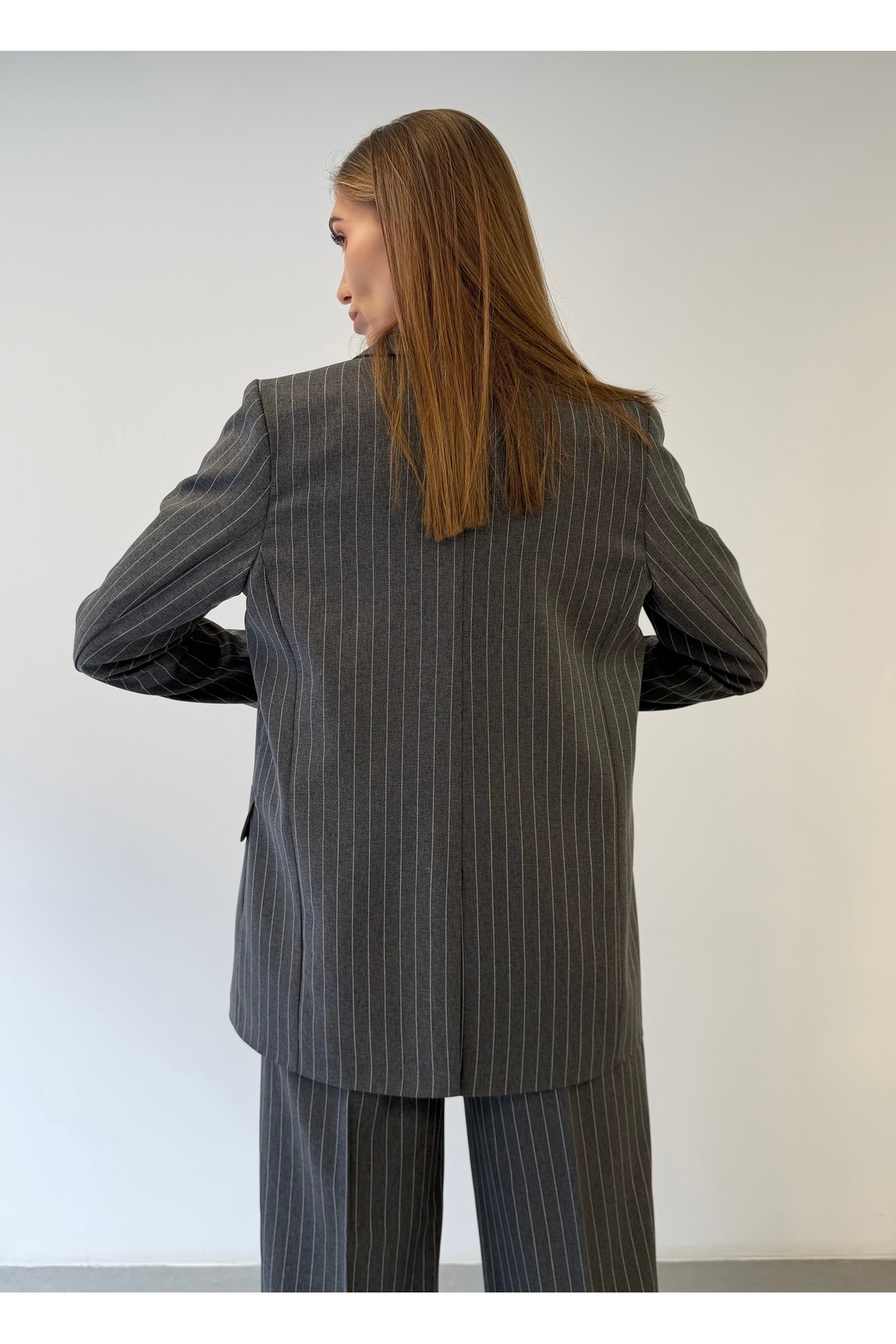 ceket: Oversize kalıp, yarım vatka ve 80 cm boy ölçüsüne sahiptir.