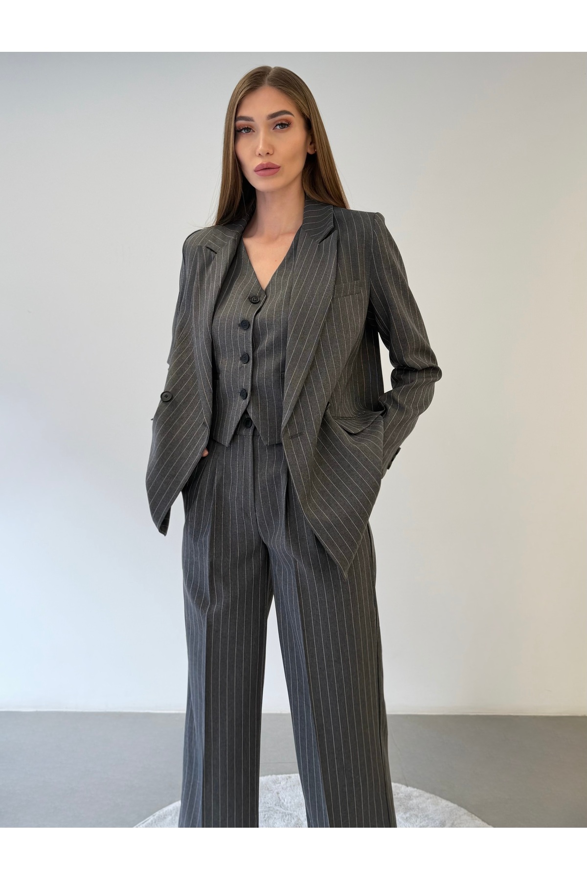 Ürün özellikleri: Limited edition ceket yelek palazzo pantolon takım ,ceket, pantolon ve yelek olarak üç parçadan oluşmaktadır.