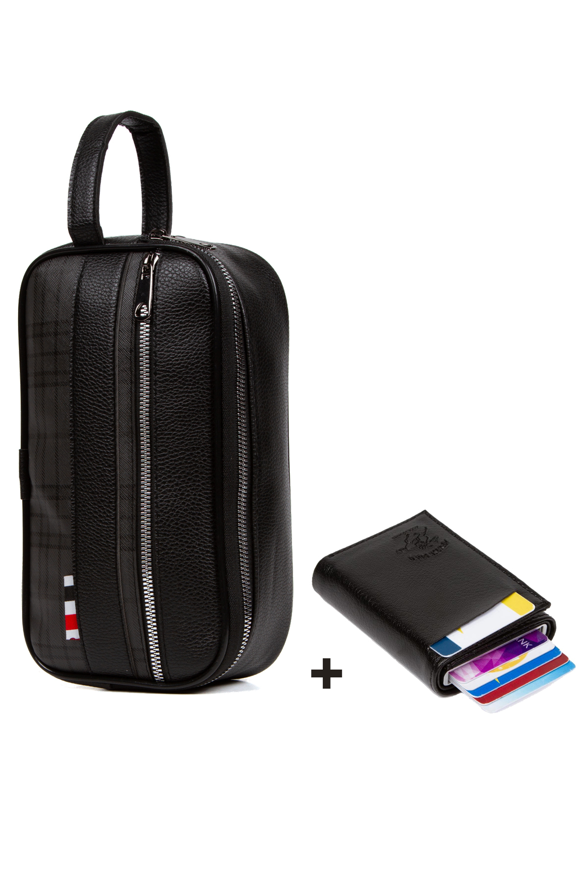 Adelina Siyah Deri El Ve Omuz Çanta Ve Mekanizmalı Kartlık Set