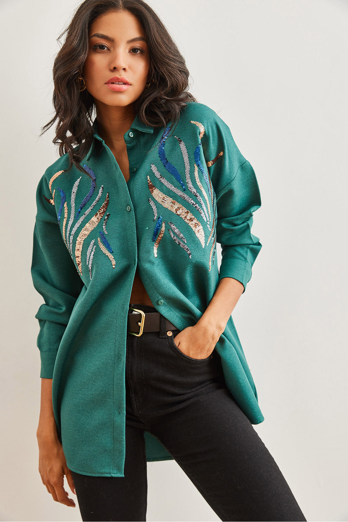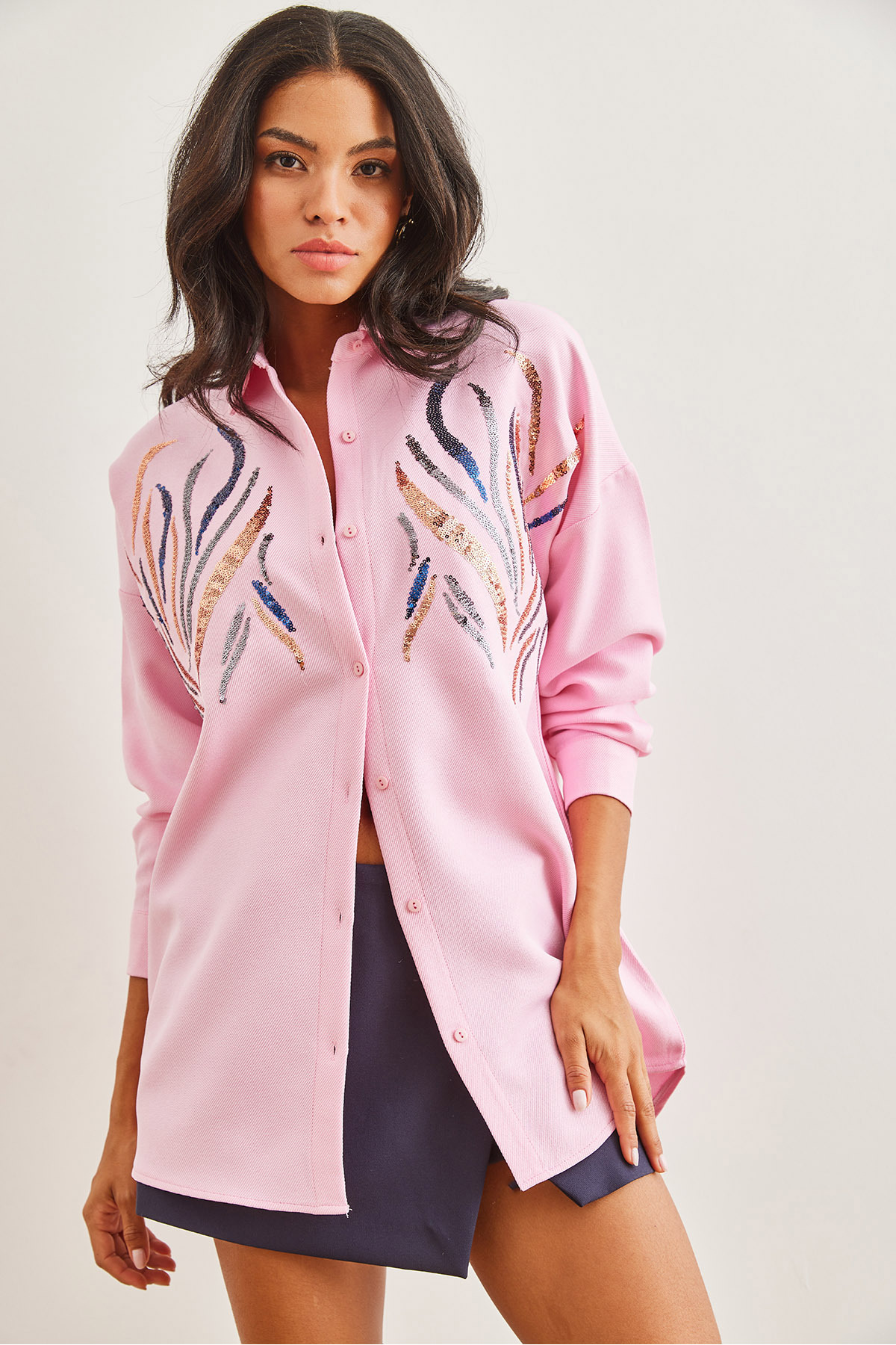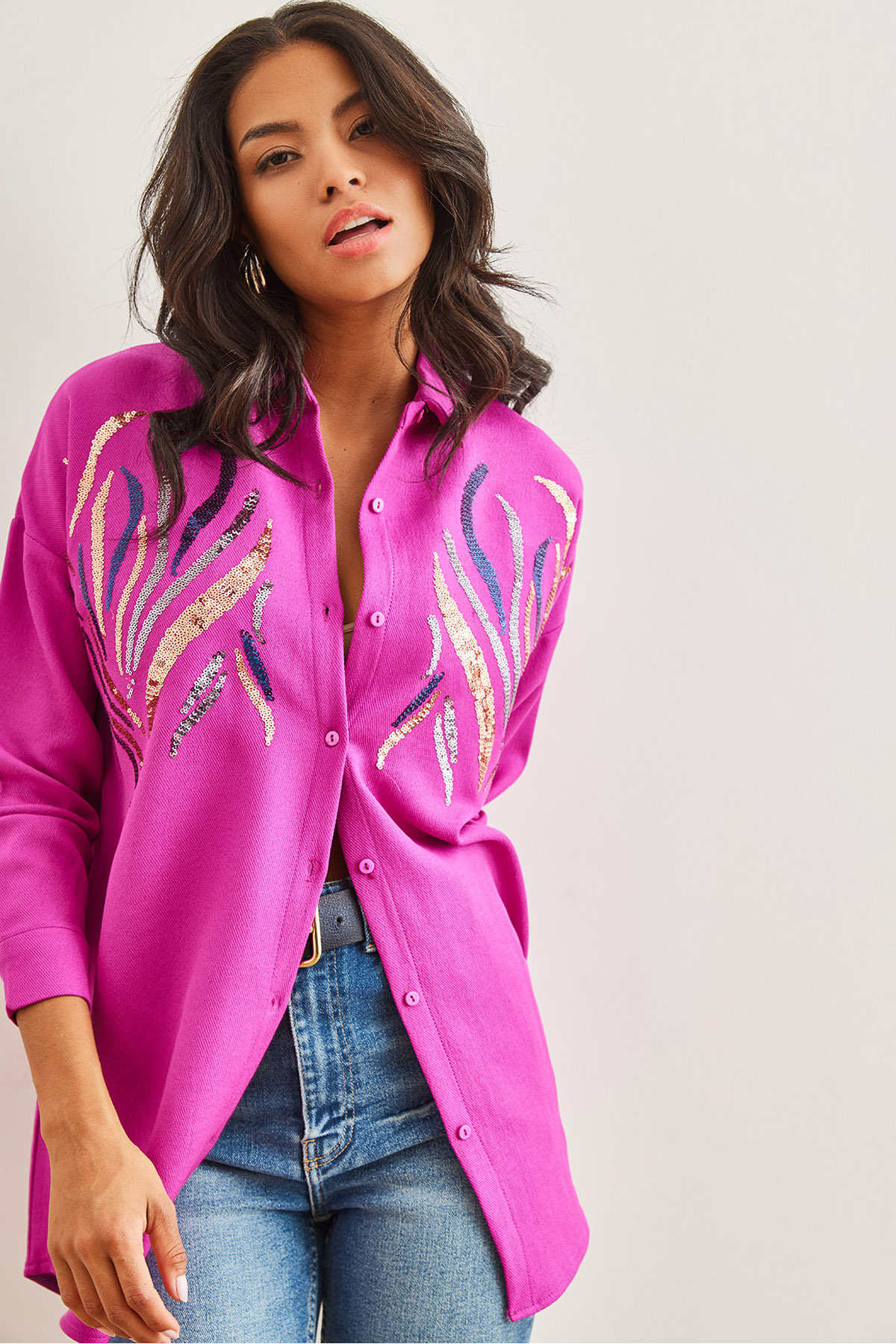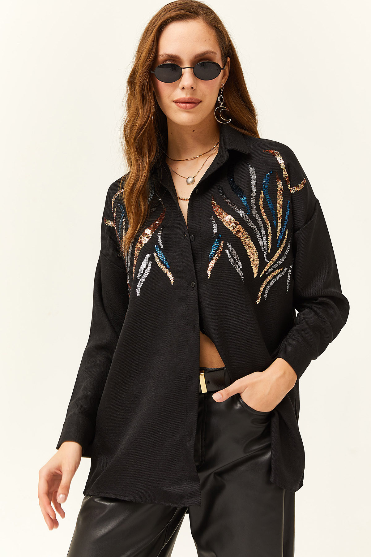 Pul payet deseniyle dikkat çekici ve trend bir görünüm kazandırır