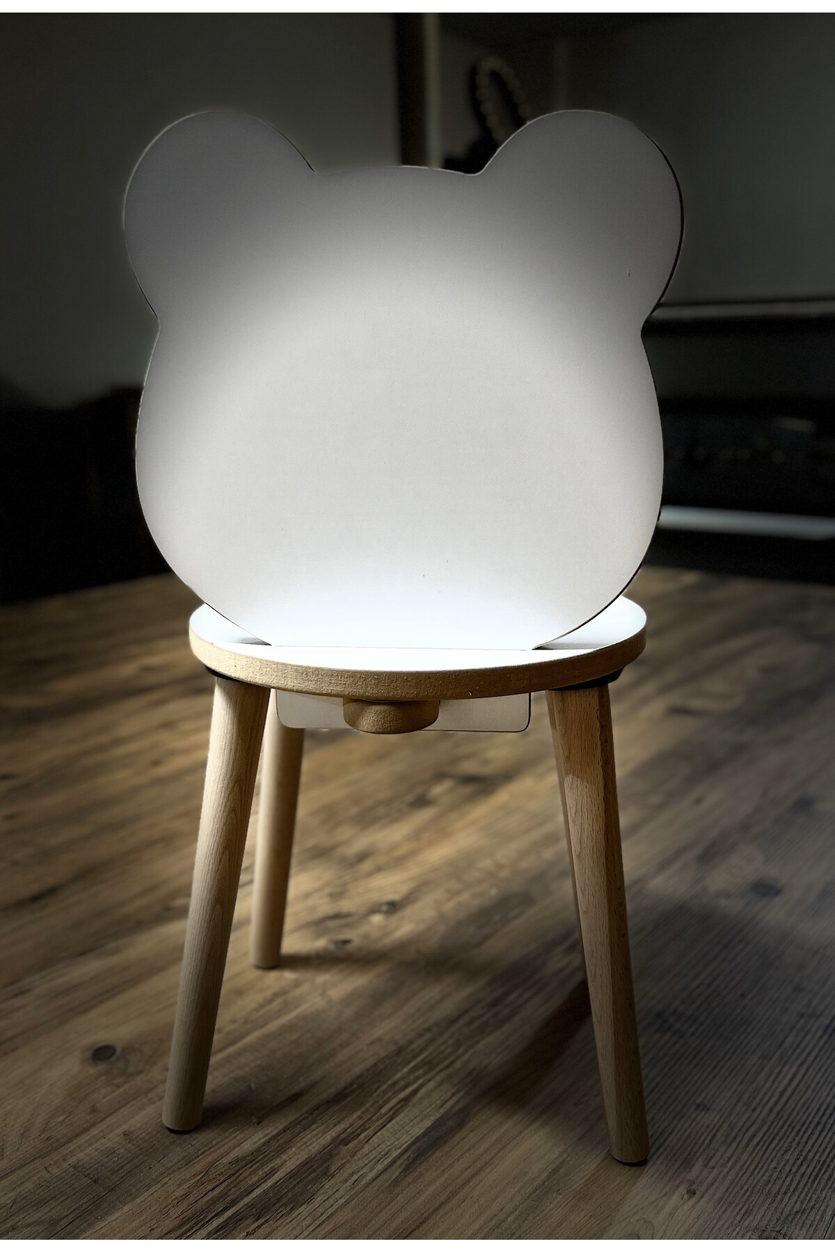 - Sevimli panda temalı tasarımı ile çocuk odalarına neşe katan beyaz renkli tabure sandalye
