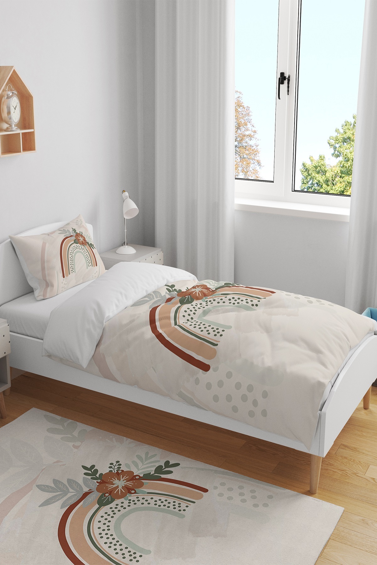 Çiçekli Gökkuşağı Desenli Tek Kişilik Bebek Çocuk Nevresim Seti