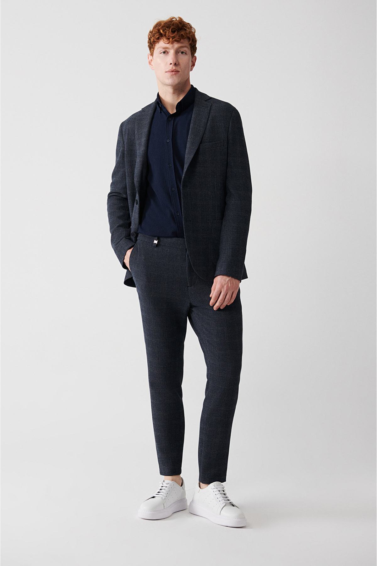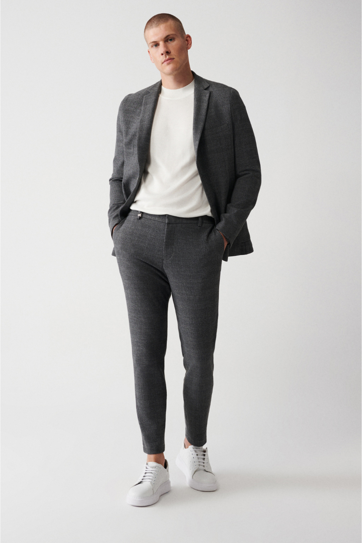 Yandan cepli, 360 derece esnek kumaş, Yan beli lastikli, Ekoseli, Pamuklu, Slim fit Dar kesim Takım Elbise PantolonuStüdyo Çekimlerinde Renkler Işık Farklılığından Dolayı Değişiklik Gösterebilir.