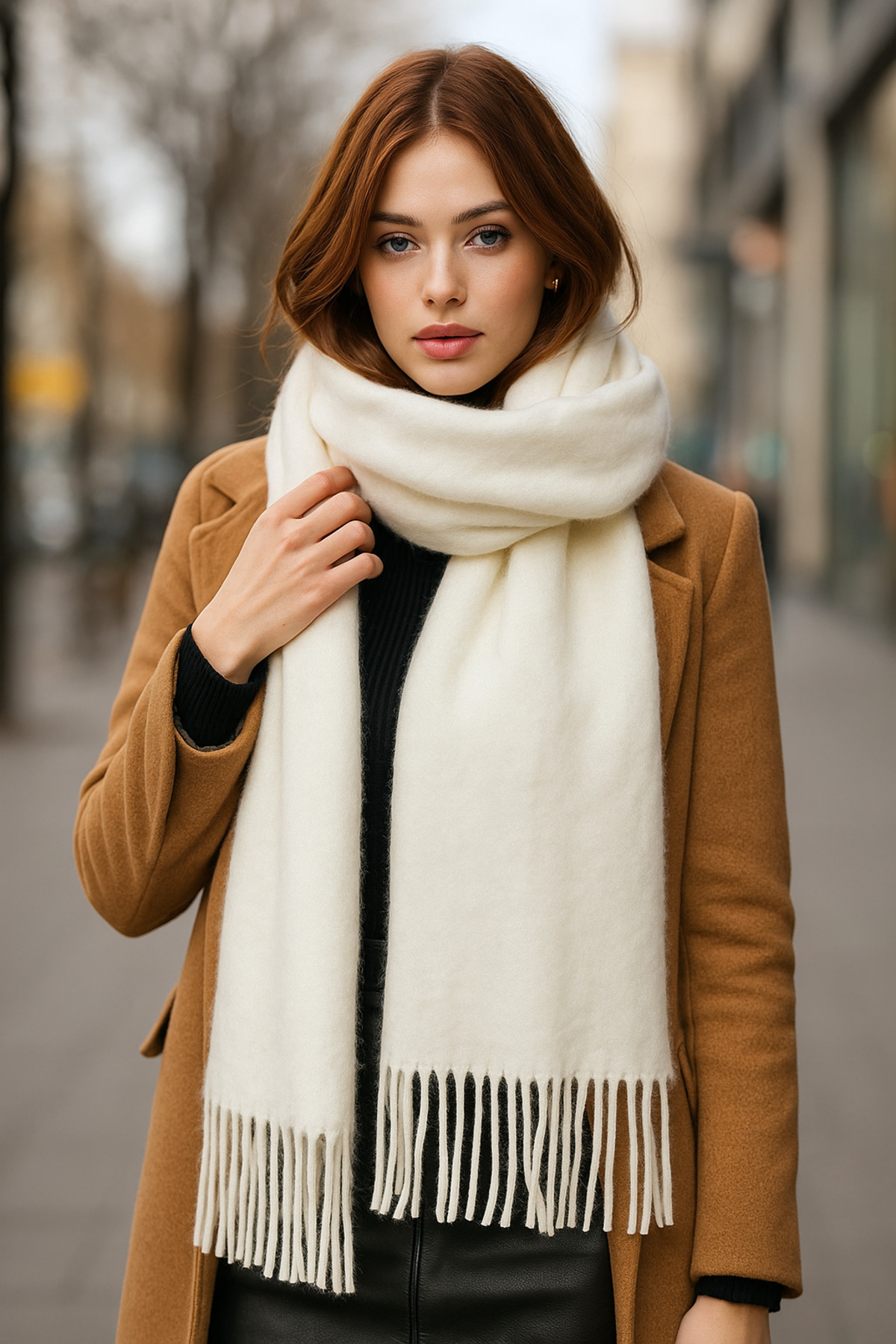 Püskül detayları ile şıklığı ve zarafeti bir arada sunan bu atkı, soğuk havalarda hem sıcak tutar hem de stilinizi tamamlar