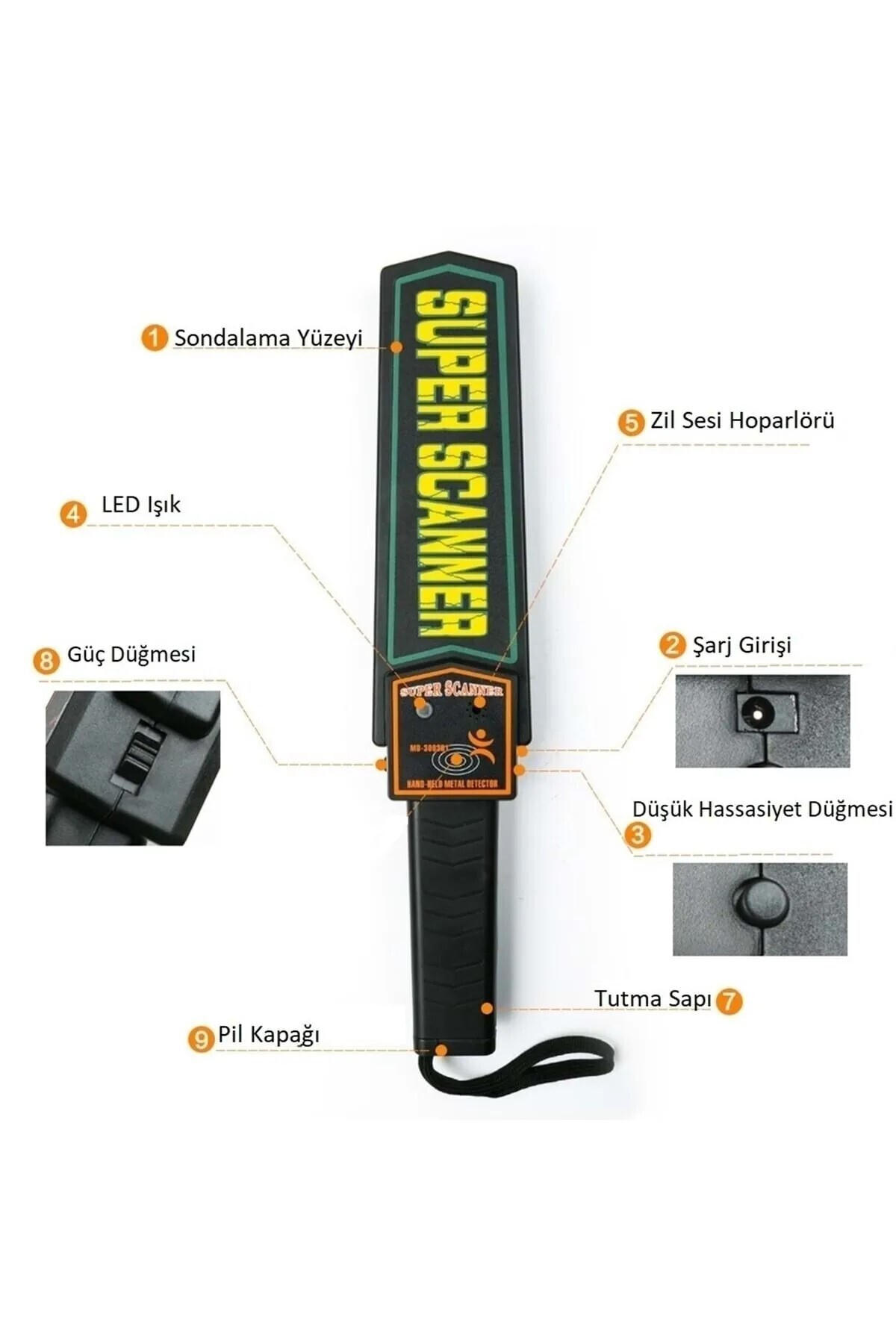 Metal Üst Arama El Dedektörü Güvenlik Havaalanı Okul