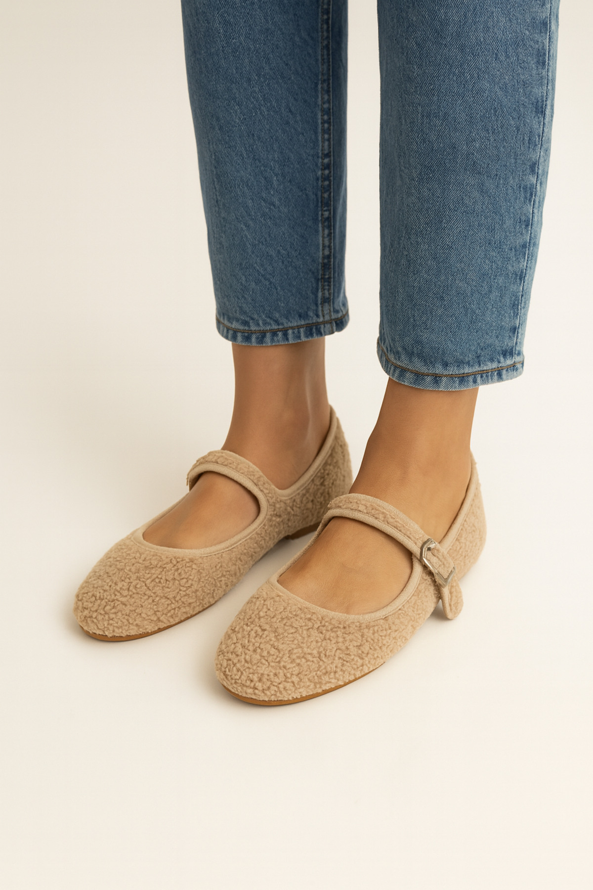 Beyond Kadın Beyaz Mary Jane Teddy Peluş Tek Bant Günlük Balerin Babet'i şimdi satın alın ve şıklığınızı yansıtın!