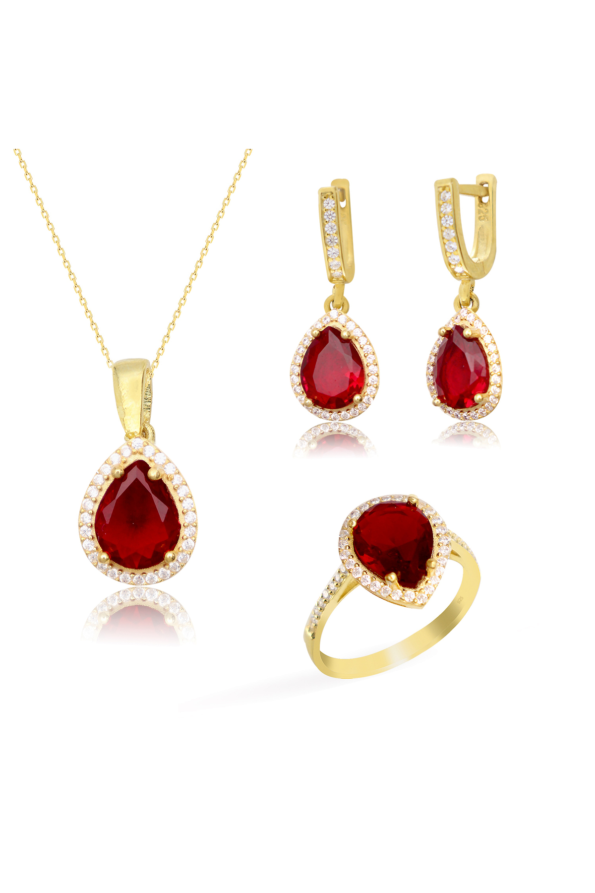 - Yakut taş kullanımı, sete zarif ve göz alıcı bir parlaklık kazandırır