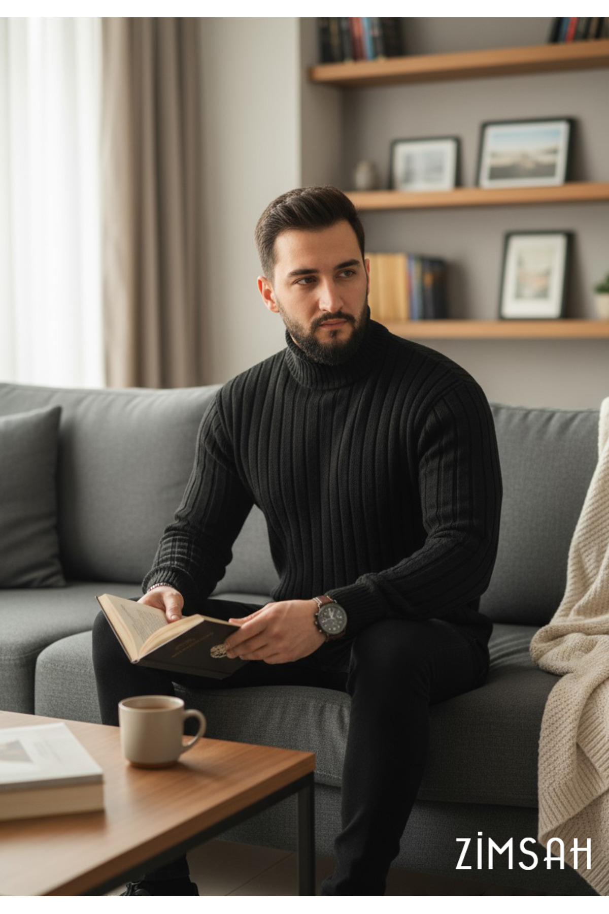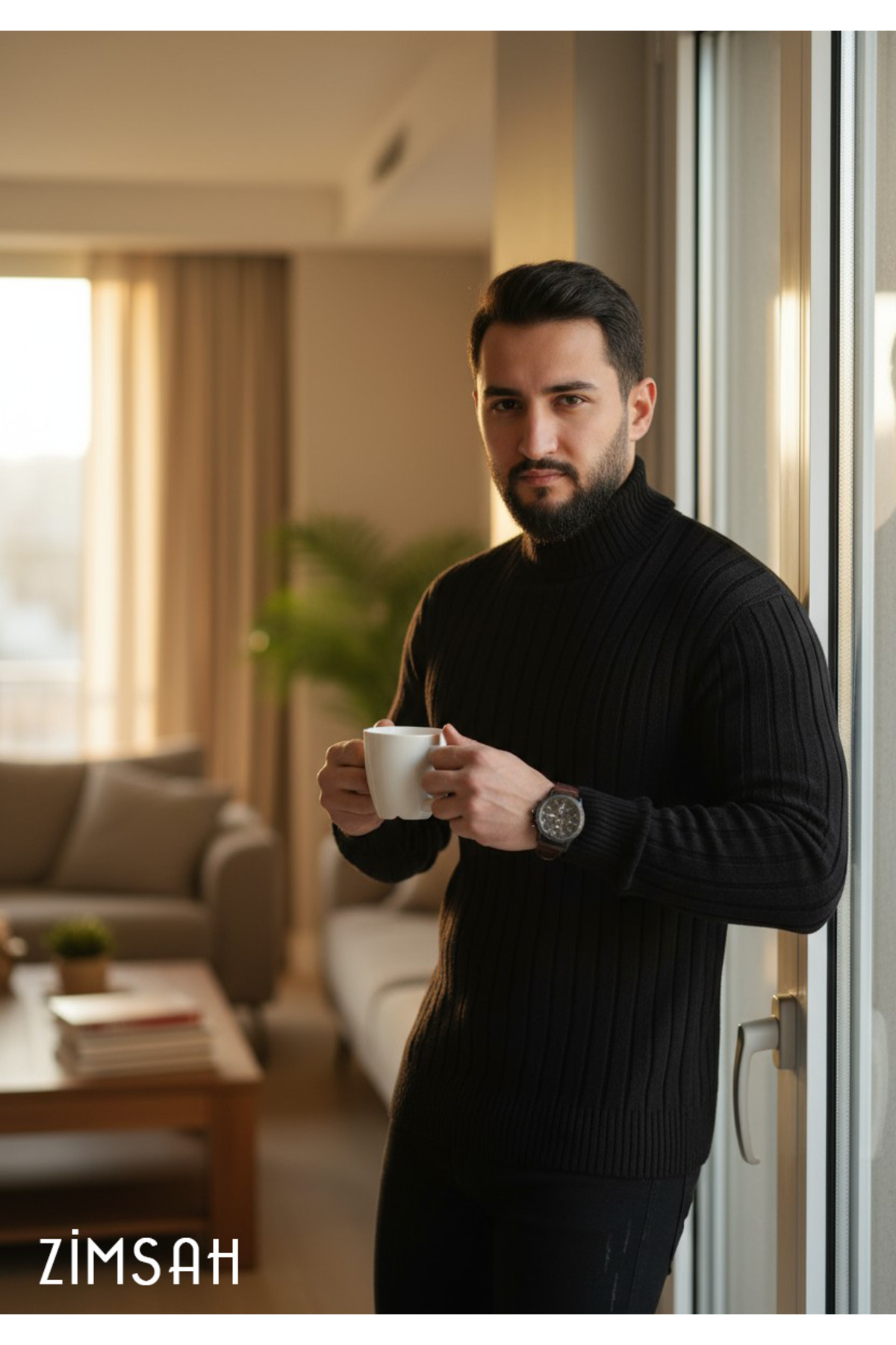 Balıkçı yaka tasarımı ile klasik ve şık bir görünüm sunar