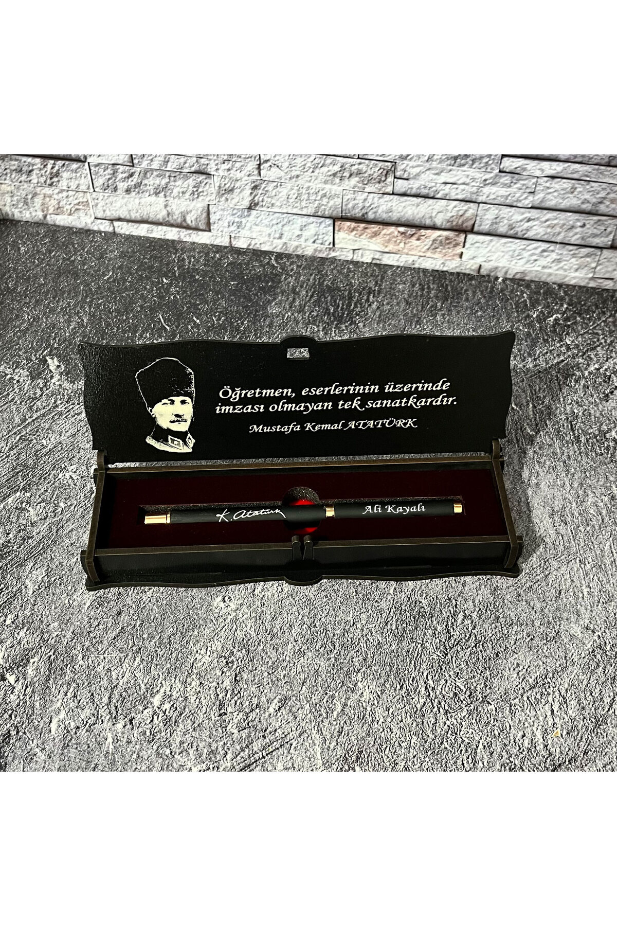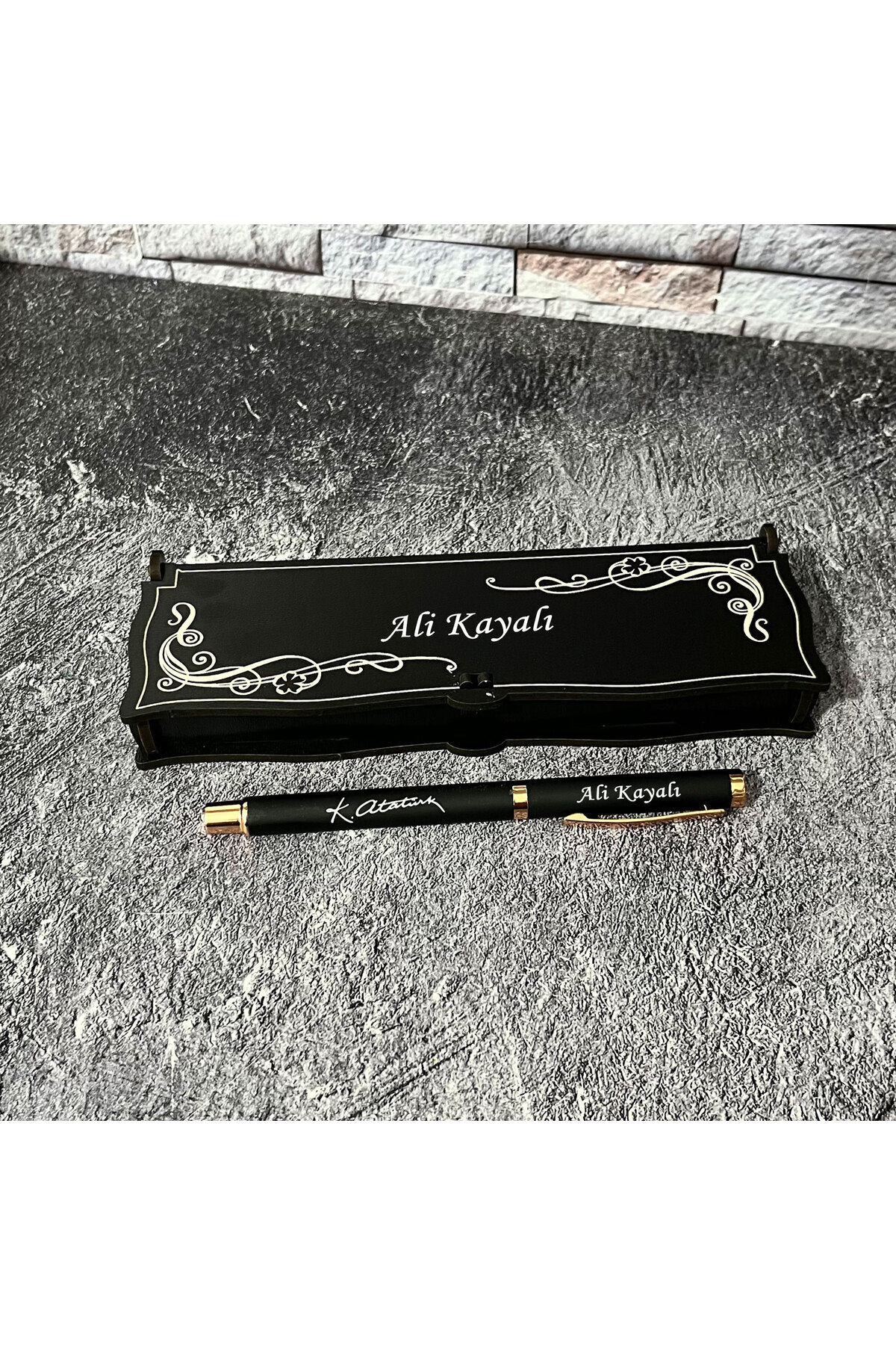 Kalem veahşap kutu lazer baskı yöntemi ile isme özel olarak hazırlanmaktadır.