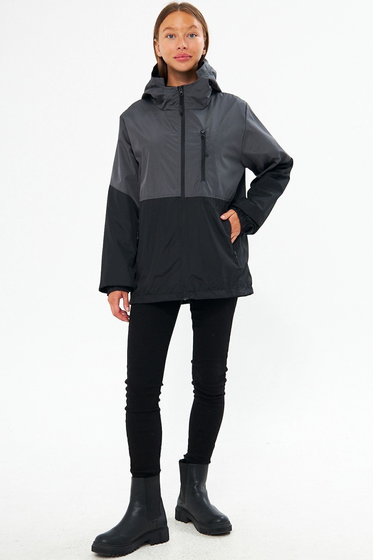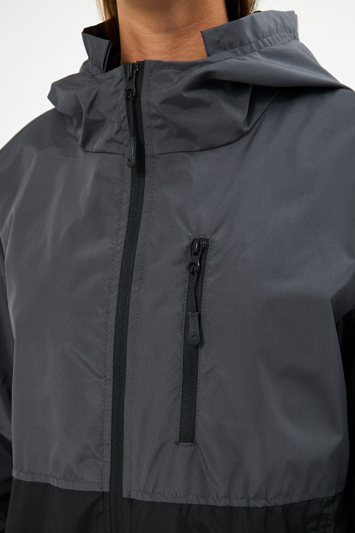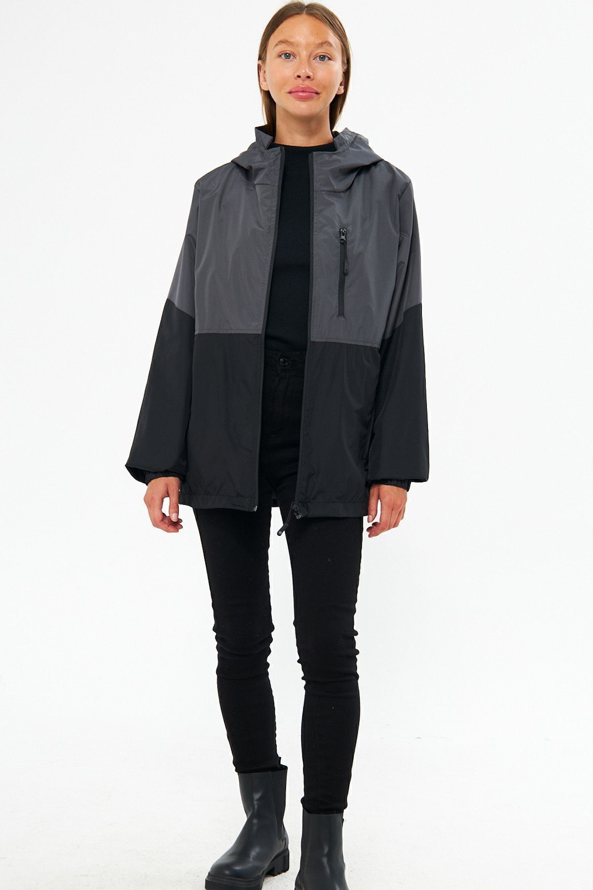Kadın Antrasit-siyah Astarlı Rüzgar Geçirmez Kapüşonlu Cepli Spor Yağmurluk - Rüzgarlık Ceket Yerli üretim Yağmurluk, modern tasarımı ve rahat kesimiyle dikkatleri üzerine çekiyor.