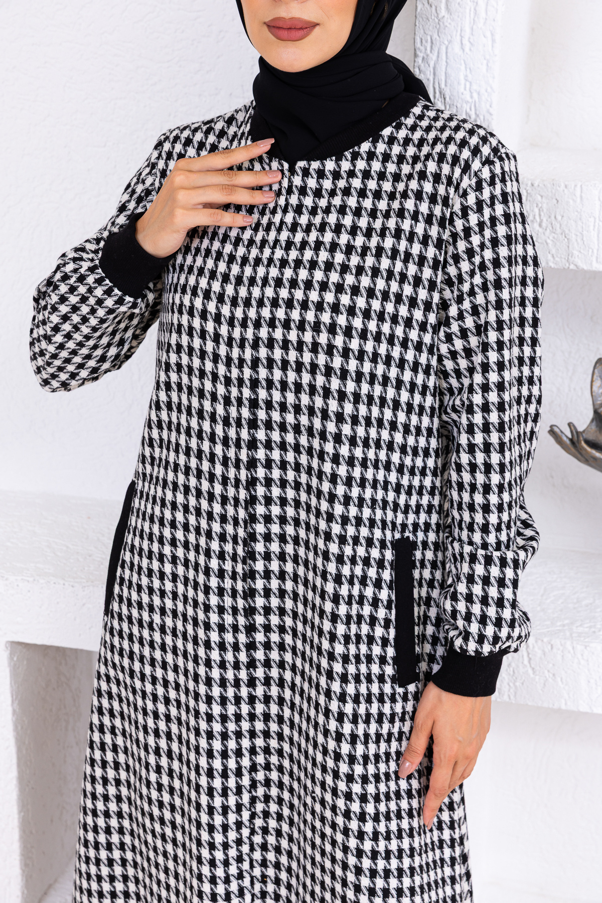 Kış aylarında şıklığınızı koruyacak kazayağı desenli tasarımıyla göz alıcı bir görünüm sunar