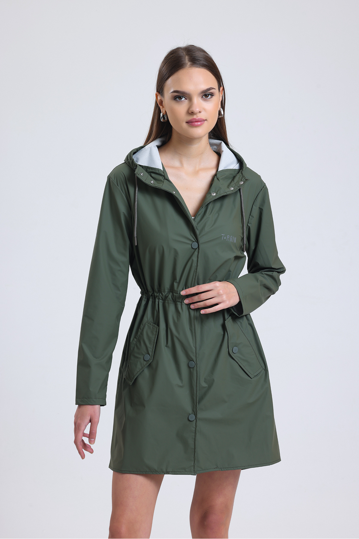 Haki rengiyle doğayla uyumlu bir tarz yaratır.