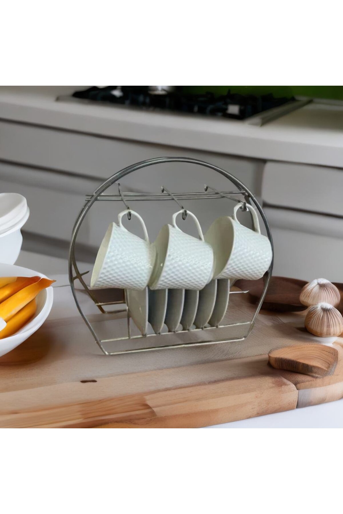 Siyah Metal Kahve Fincan Askı Standı Kupa Askısı Tabak Bölmeli Nevhas 6 Kancalı Fincan Askılığı 6 Kancalı fincan askılığı *fincan ve tabaklar ürüne dahil değildir.