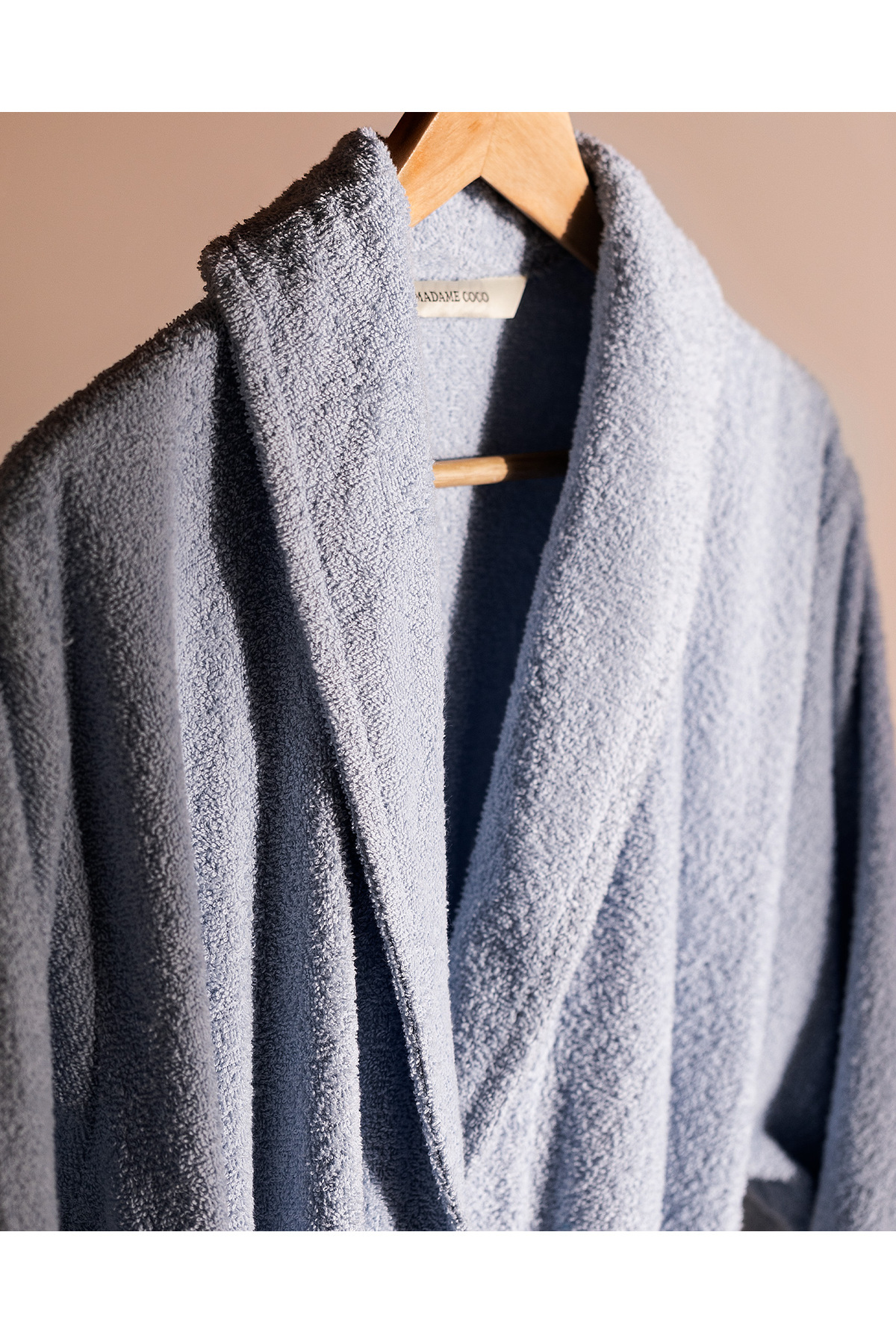 Belda Şalyaka Kadın Bornoz - Mavi Yüksek nem emiciliği özelliğiyle %100 pamuklu Belda Şalyaka Kadın Bornoz, sadelik tercih edenler için ideal bir seçimdir.