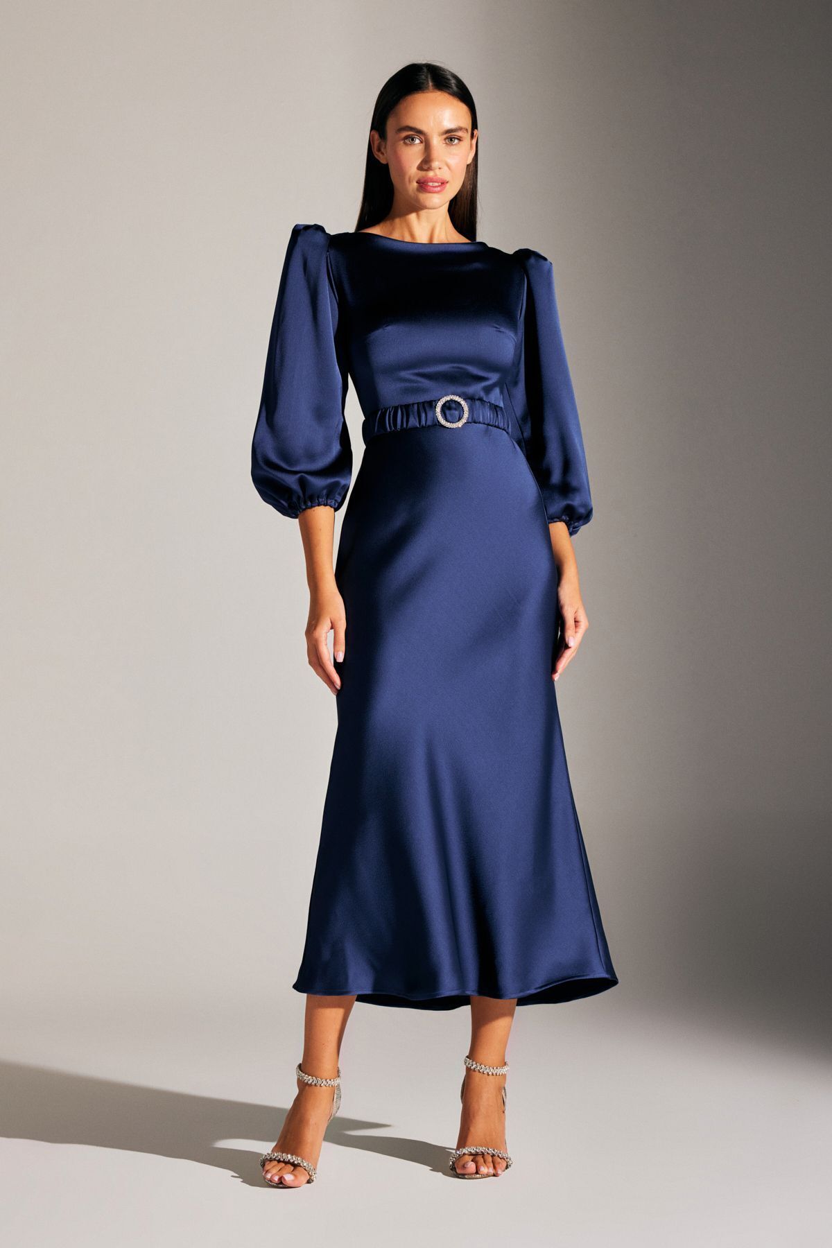 Belinizi zarifçe vurgulayan kemer detayı ile feminen bir siluet oluşturur.