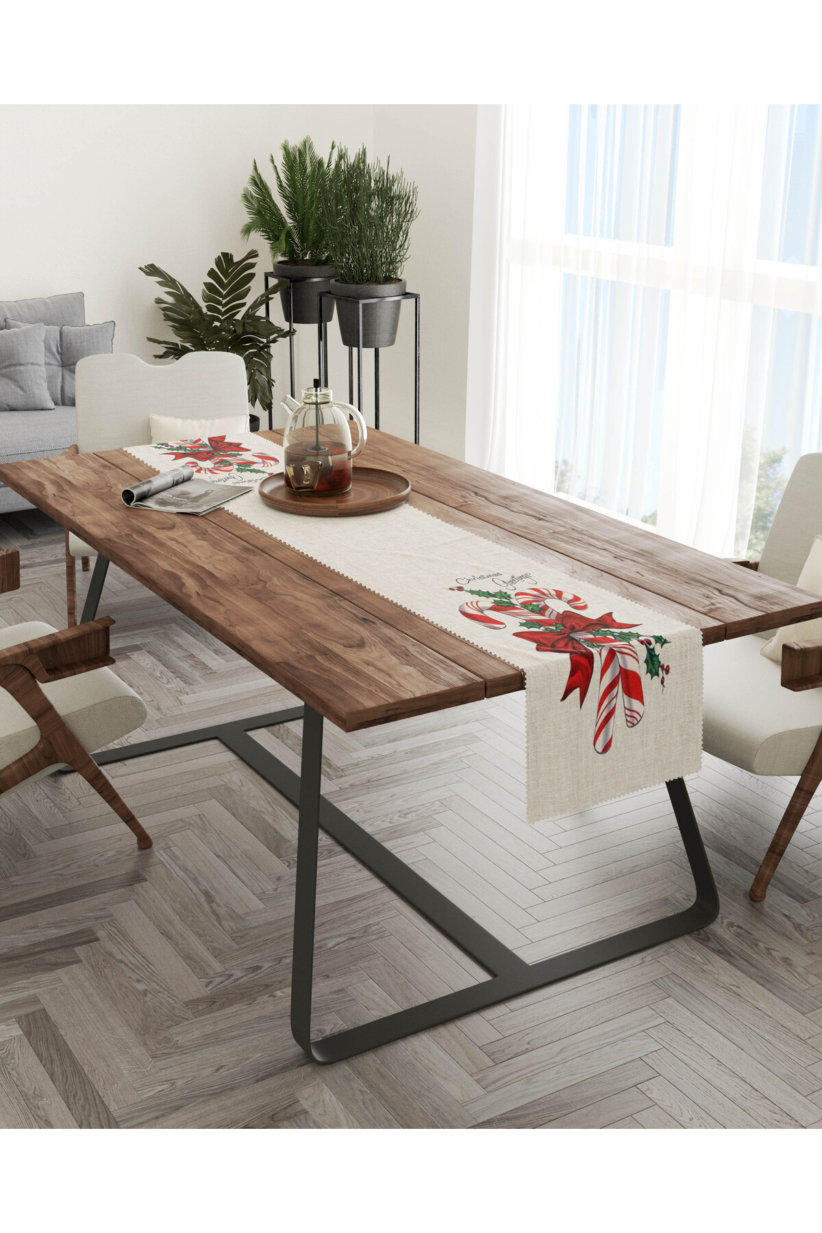 Tek parça halinde sunulan bu runner, yılbaşı ve Noel temalı desenleriyle masanızın şenlik havasını yansıtır