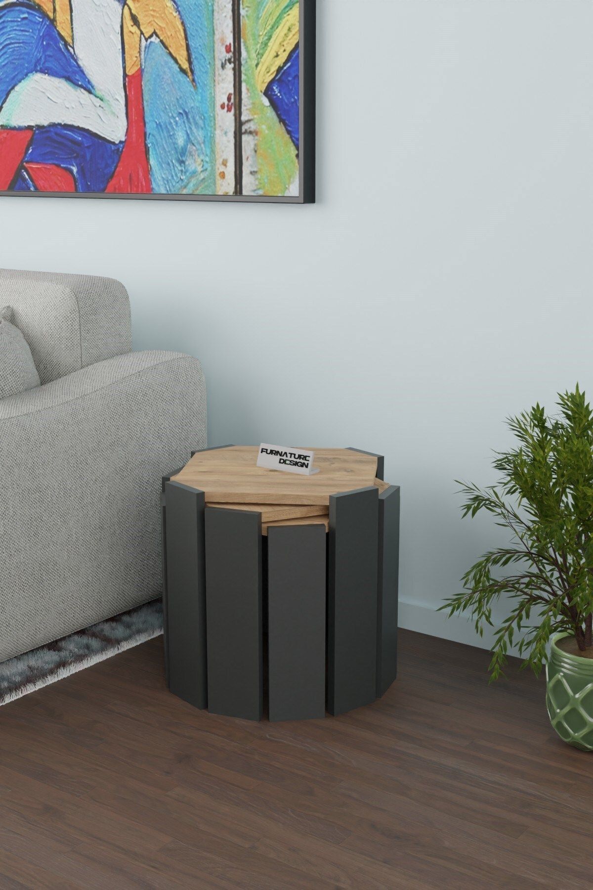 Bu zarif ve şık tasarıma sahip Sekizgen Üçlü Zigon Sehpa Seti, yaşam alanınıza modern bir dokunuş katmak için mükemmel bir seçenektir.
