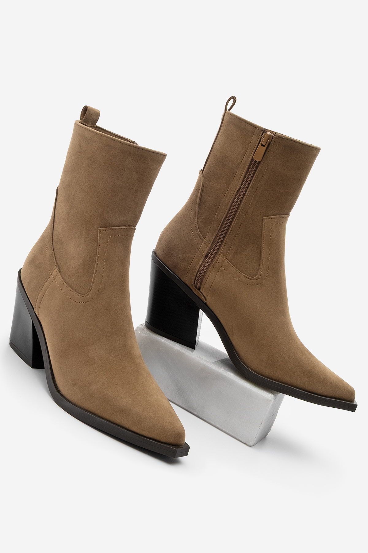 Marjin Kadın Western Bot Fetya: Kalın topuklu tasarımı ve vizon süet , taba süet, bej süet renk seçenekleriyle tarzınıza modern bir dokunuş katıyor.