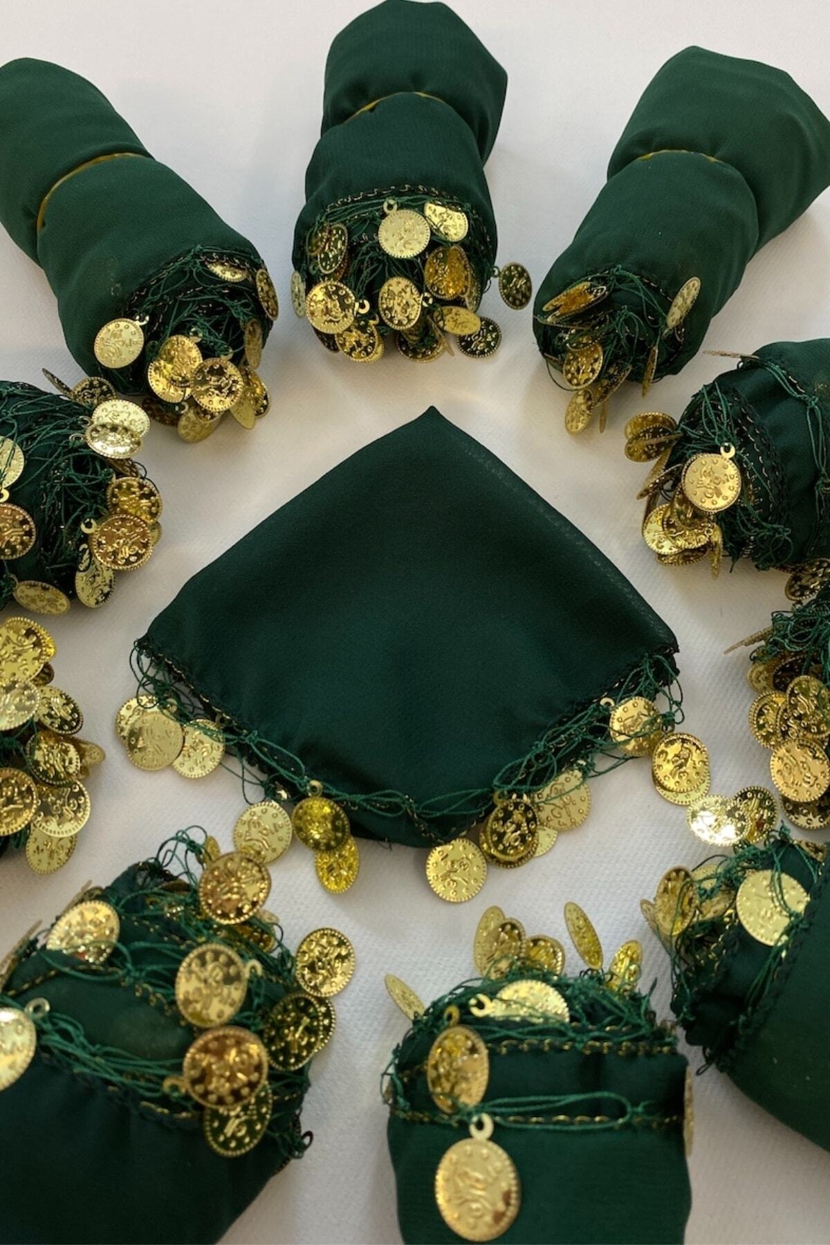 Yeşil Şifon Gelin Damat Nedime Halay Mendili, Söz Nişan Düğün Kına Sünnet Gösteri Mendil 5 Adet