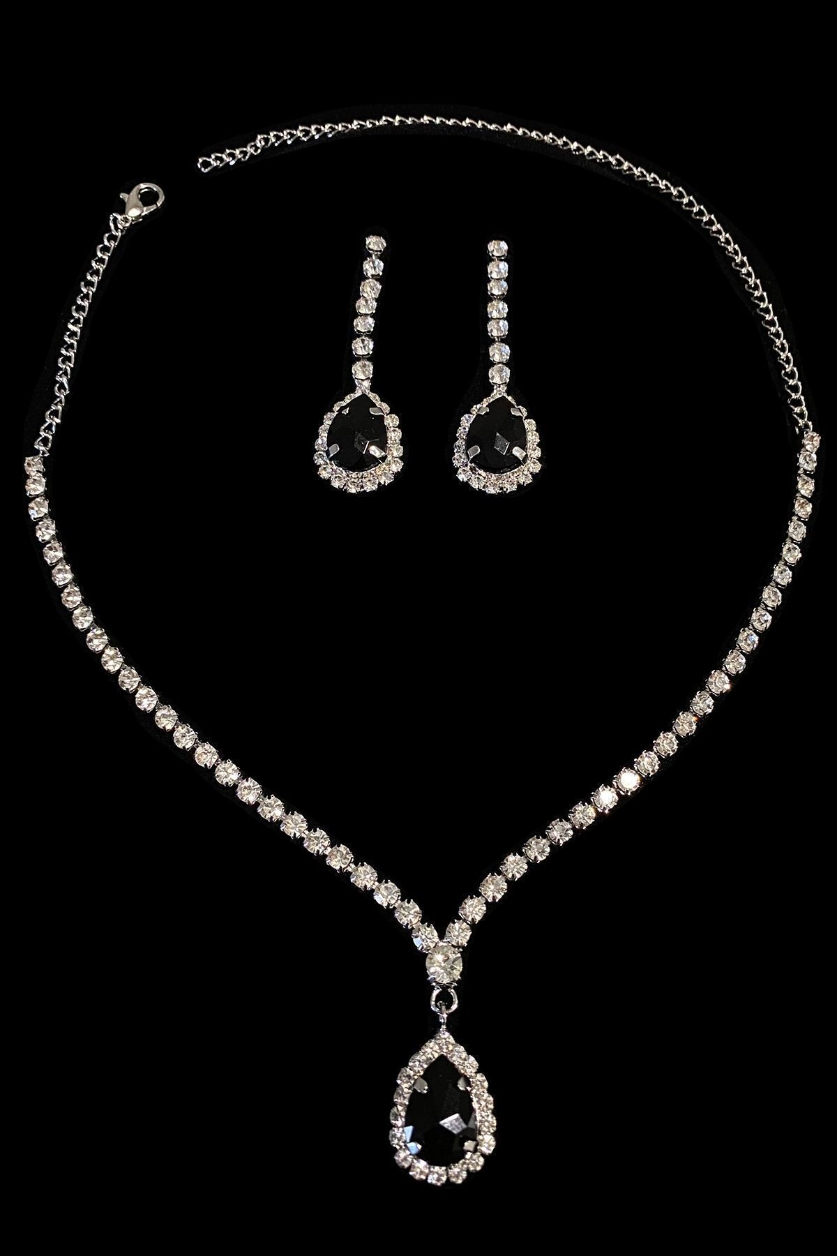 Kadın Ardente Siyah Kristal Zirkon Taşlı Kolye + Küpe Gerdanlık Su Yolu Gümüş Kaplama Takı Seti | Ürün Açıklaması Videosu Özellikleri Fotoğrafları
