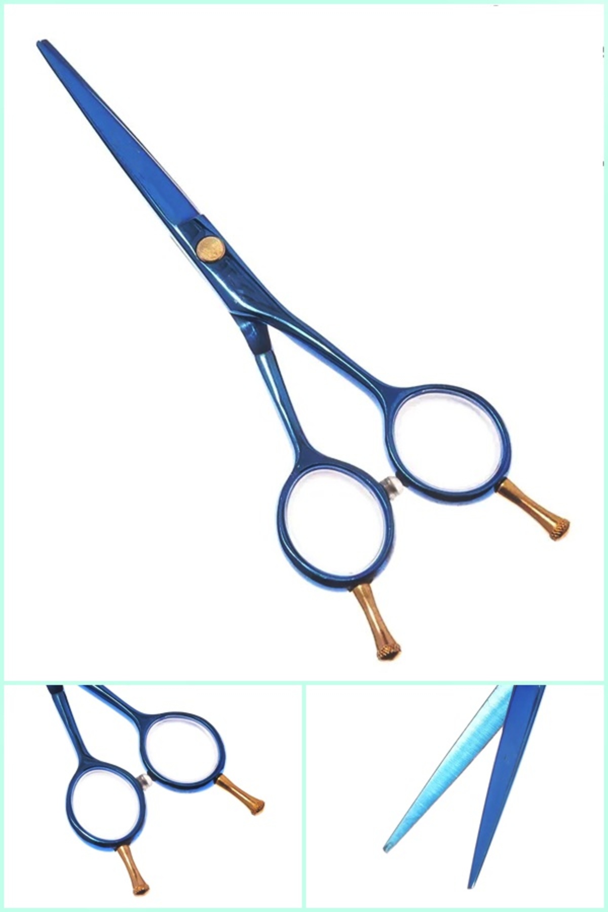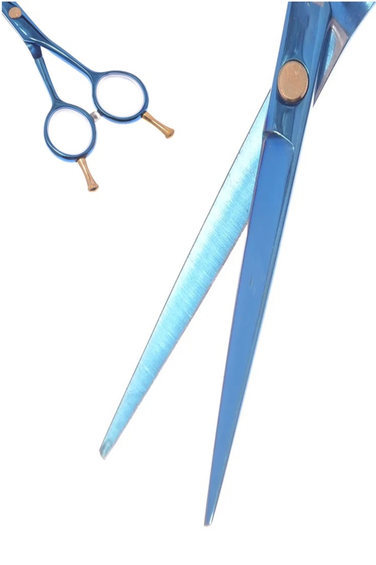 Çift Parmak Vidalı Ayarlanabilir Çelik Mavi Düz Uçlu Berber Kuaför Saç Kesim Makası XLQ580B