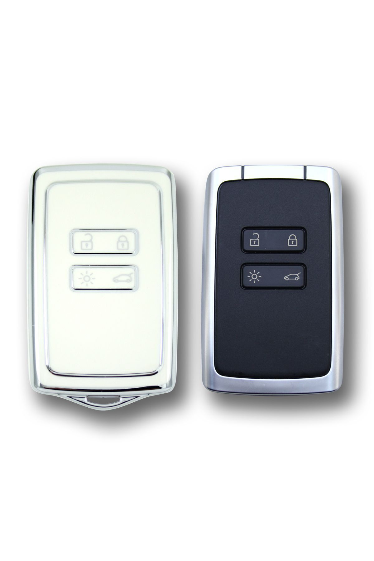 Beyaz ve gümüş renk seçenekleriyle aracınızın anahtarını korurken aynı zamanda estetik bir görünüm sunar