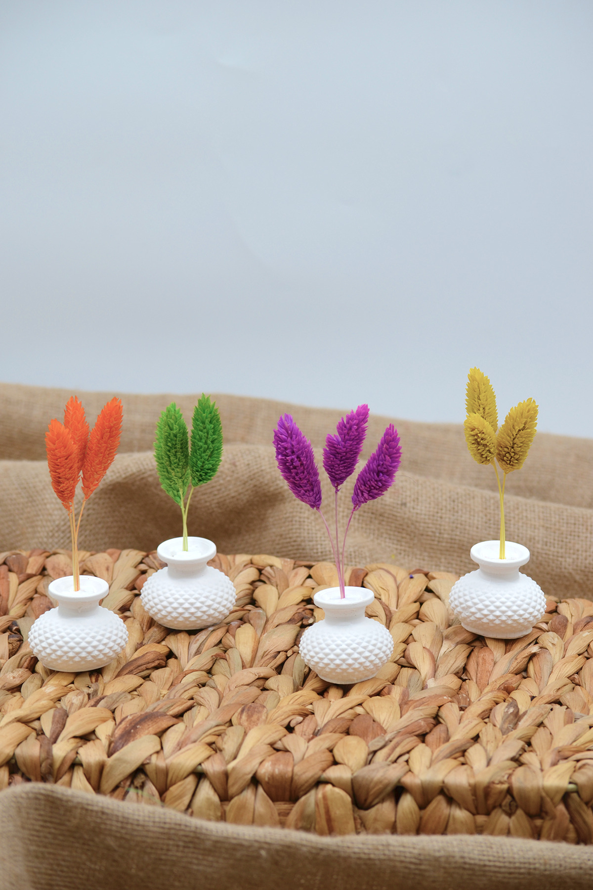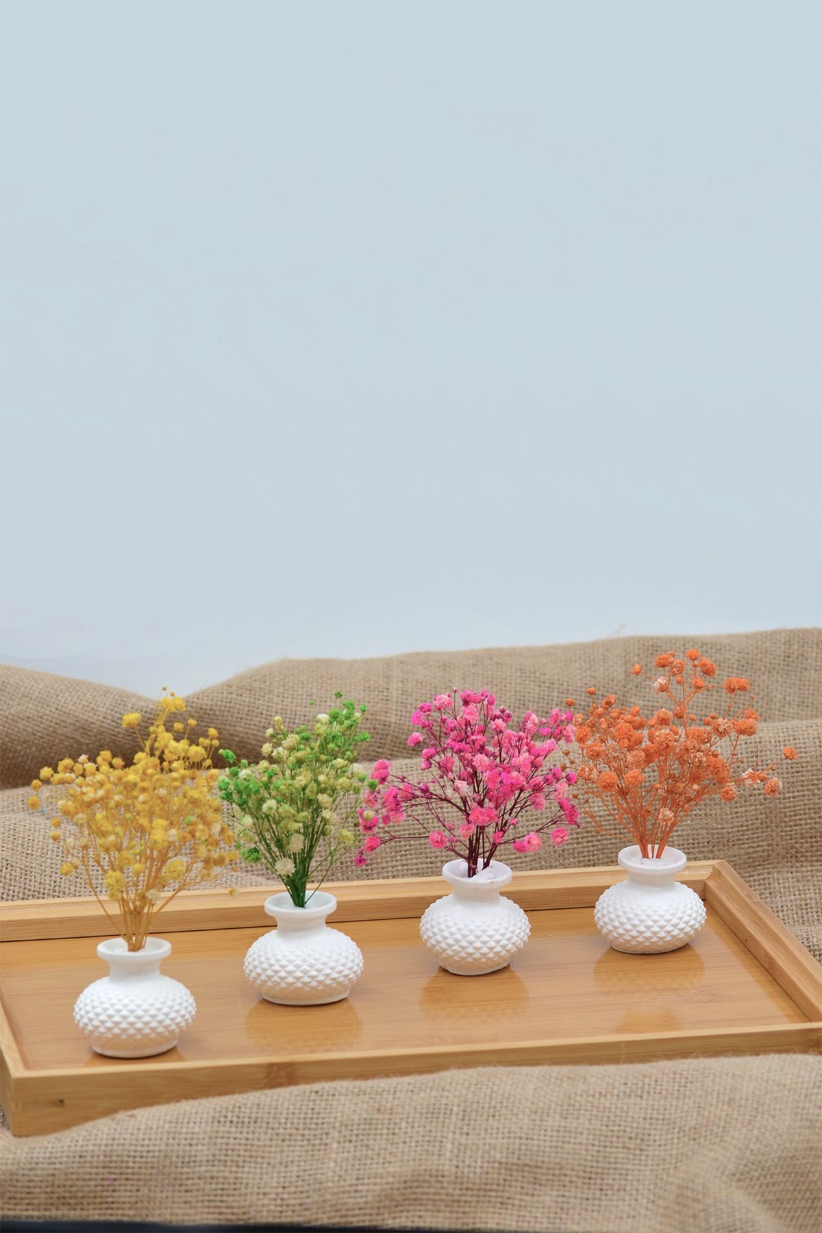 4 Adet Mini vazo, Stok durumuna göre 4 farklı renk Cipso ile birlikte gönderilecektir.