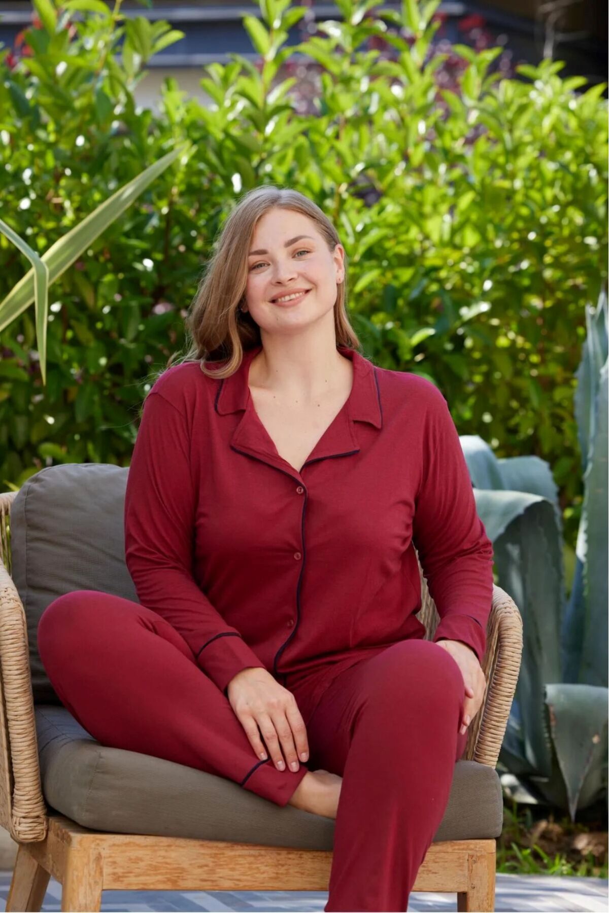 - Evde rahatlığı ve şıklığı bir arada sunan büyük beden kadın pijama takımı, uzun kollu tasarımı ile konforlu bir kullanım sağlar