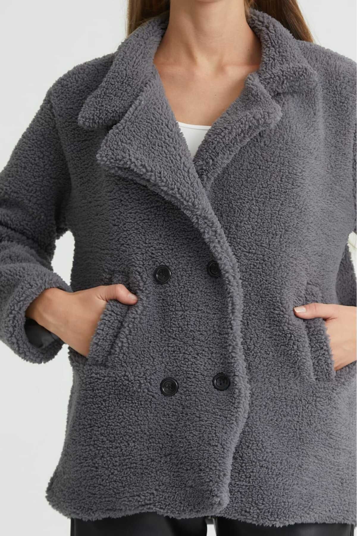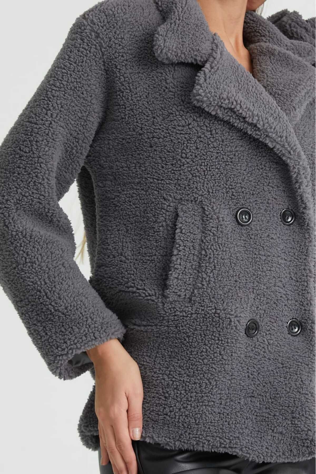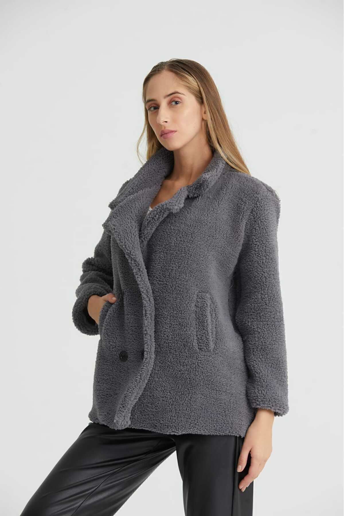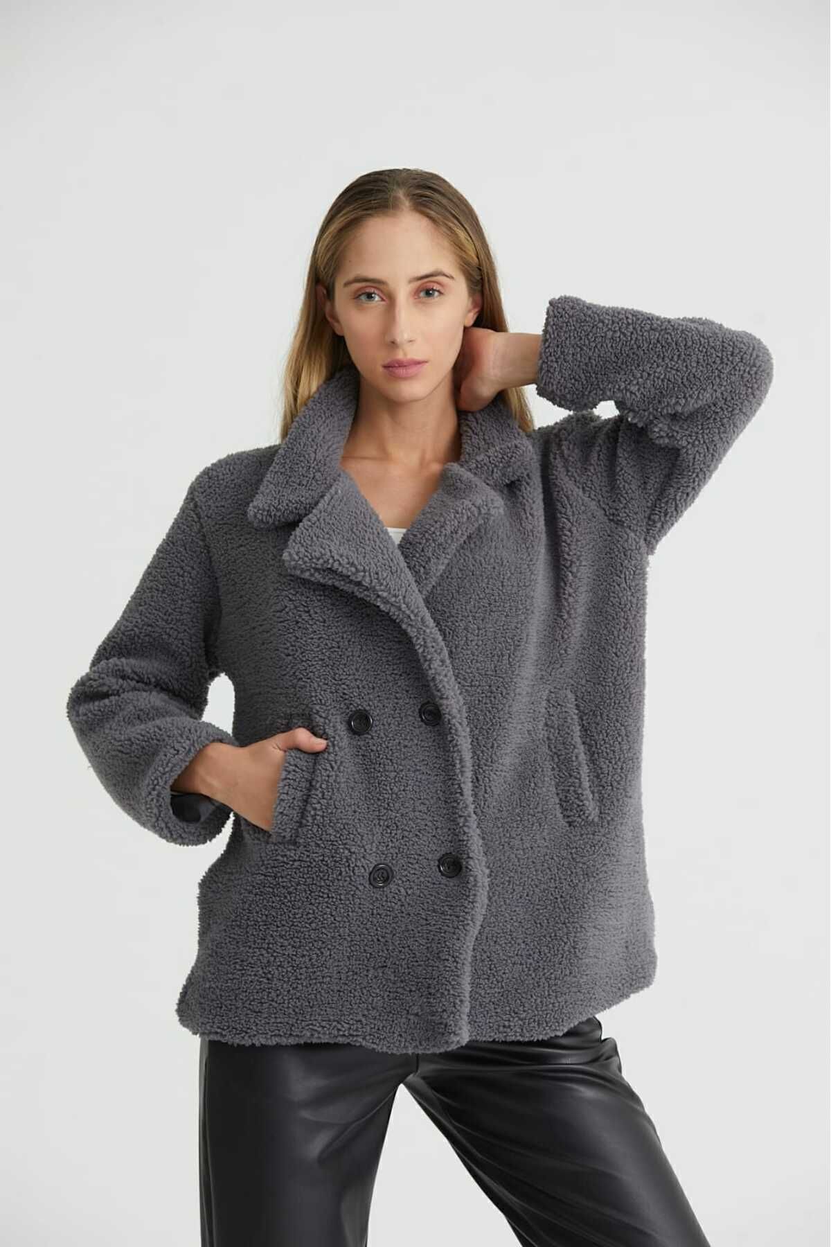 Yumuşak dokusuyla öne çıkan peluş mont, orta kalınlığındaki materyali sayesinde mevsim geçişlerinde ideal sıcaklık sunar.