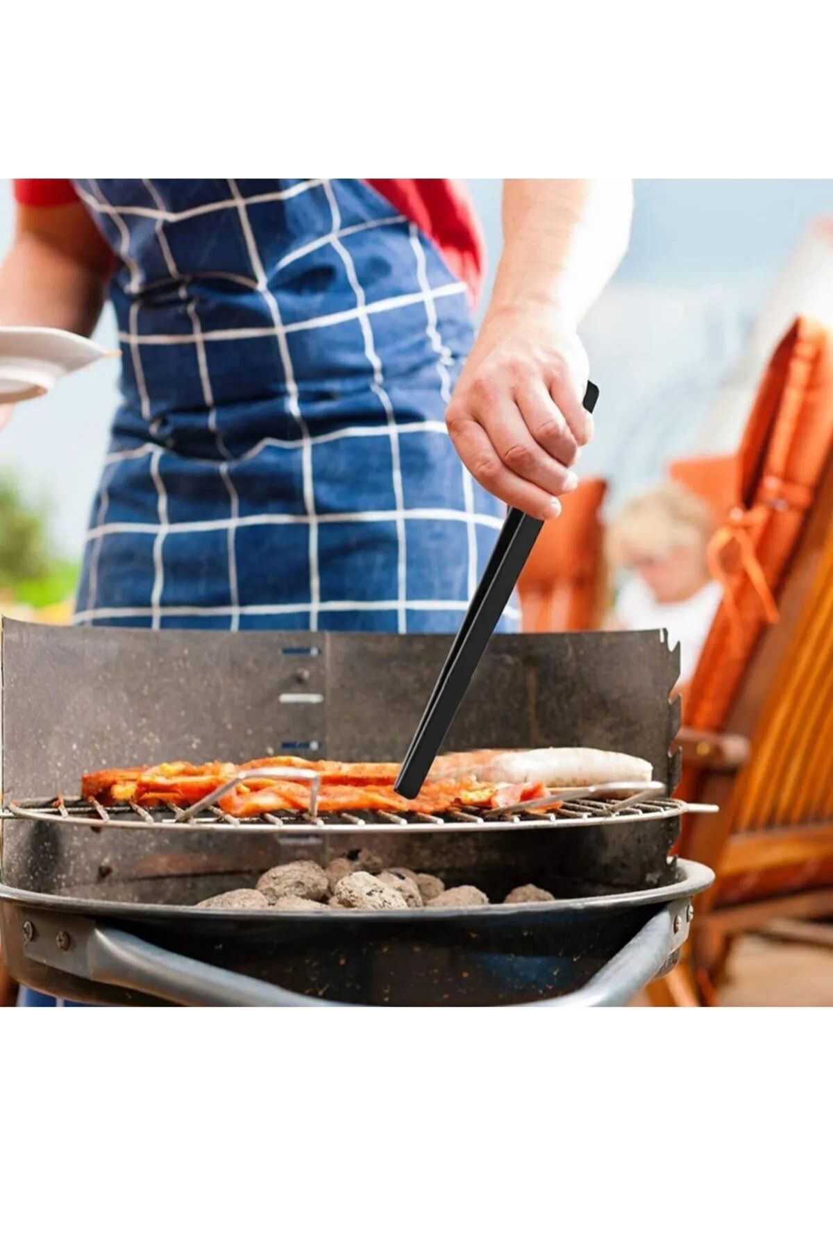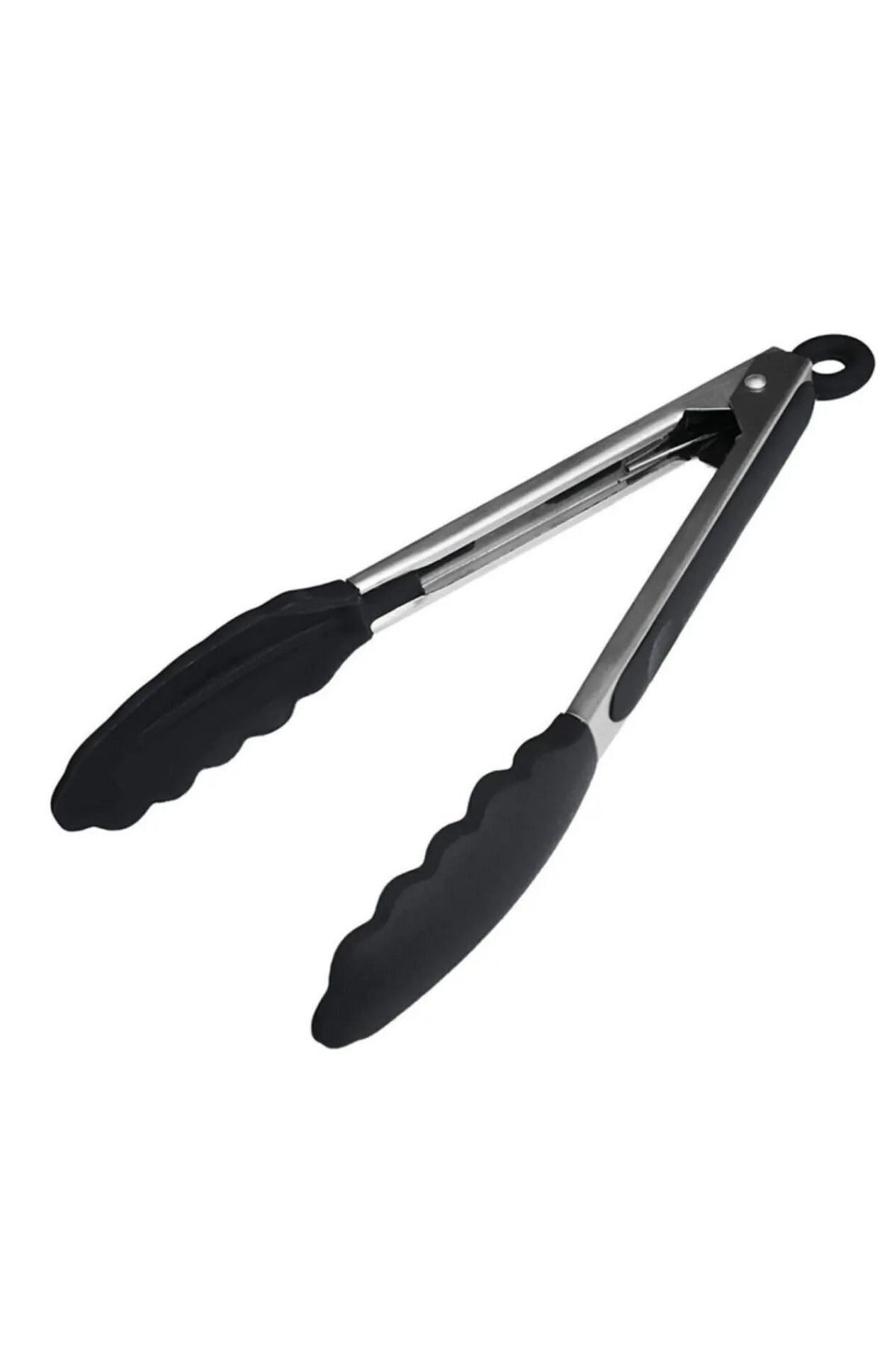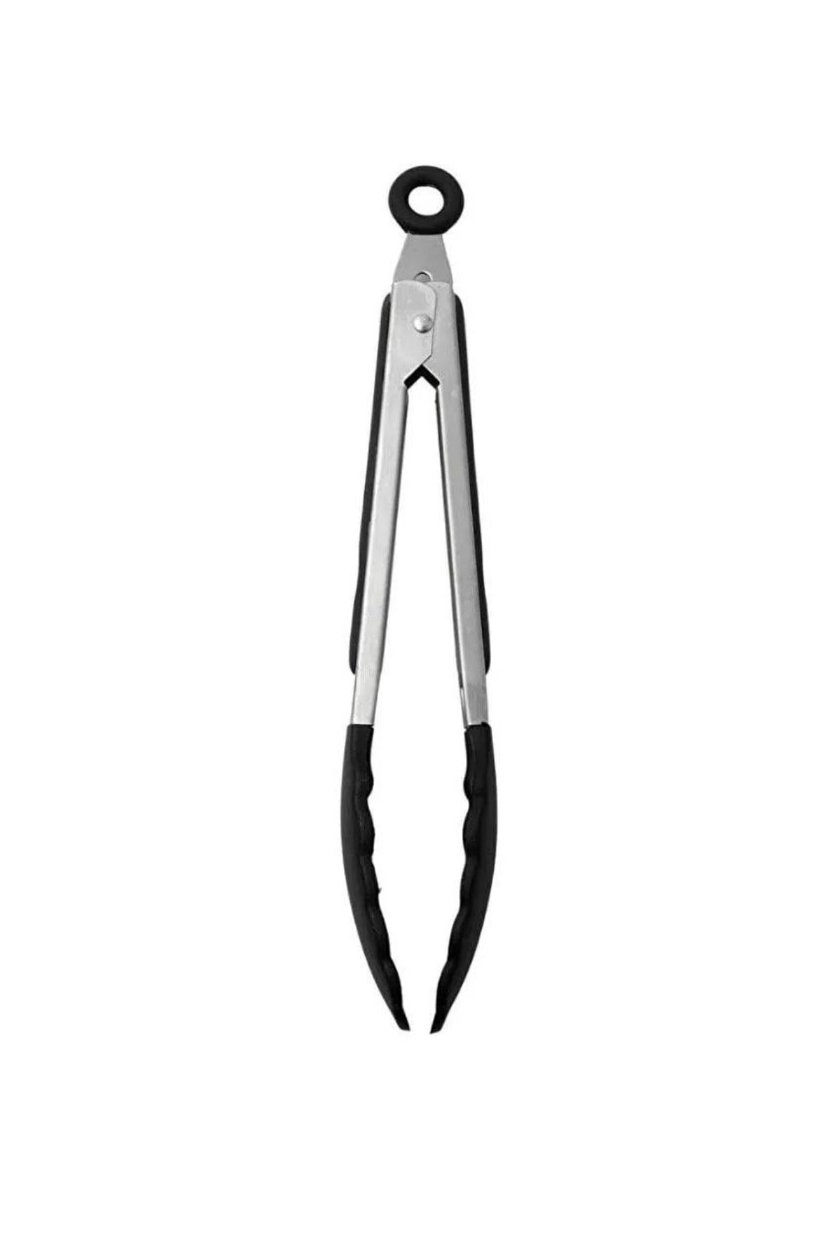 Metal Kızartma Maşası Silikon Uçlu Maşa Siyah Renk Yeni Servis Maşası