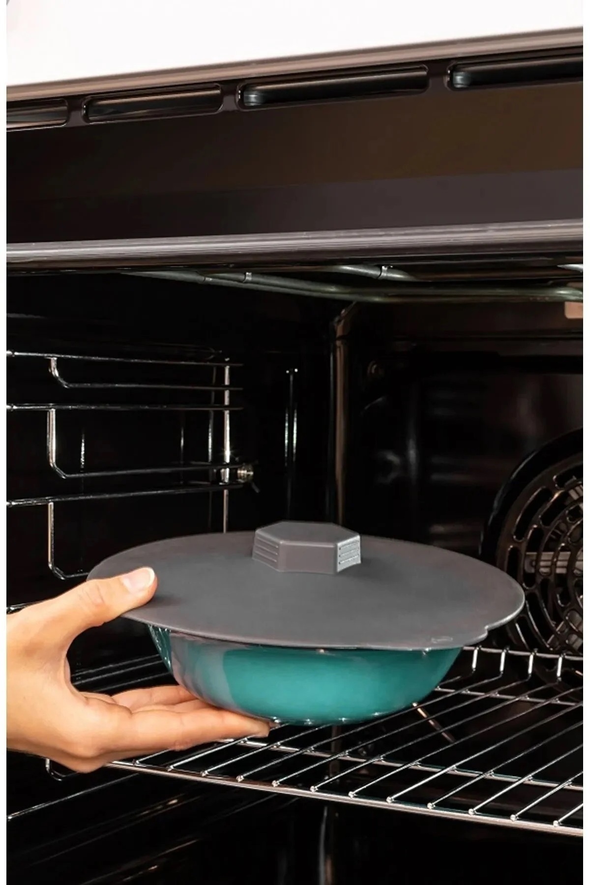 Silikon yapısı sayesinde tencerenizi sıkıca tutar ve kavrar, öyle ki ters çevirdiğinizde bile silikon kapağın düşmedini görebilirsiniz