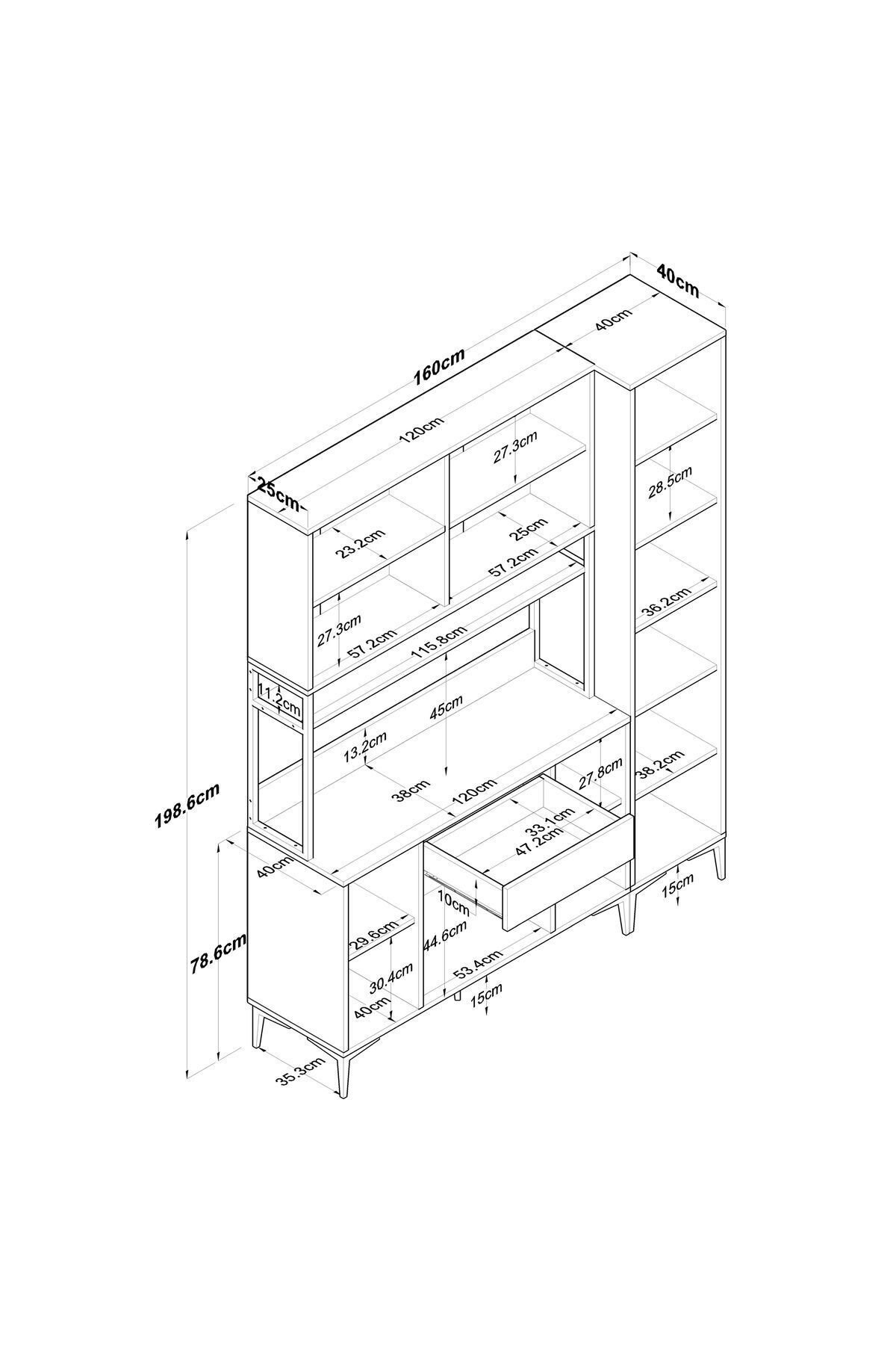 Genişlik: 160 cm - Derinlik: 40 cm - Yükseklik: 198,6 cm