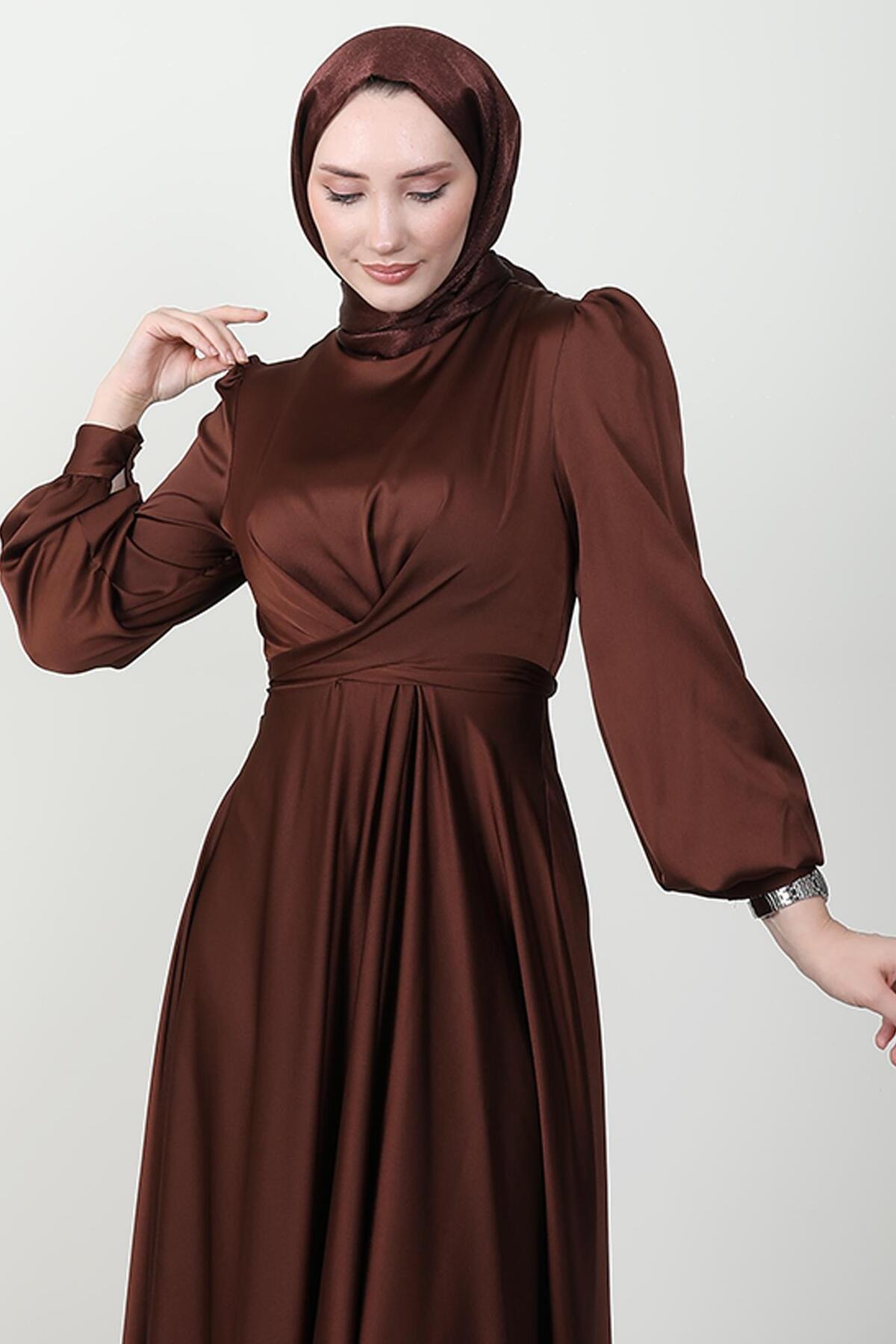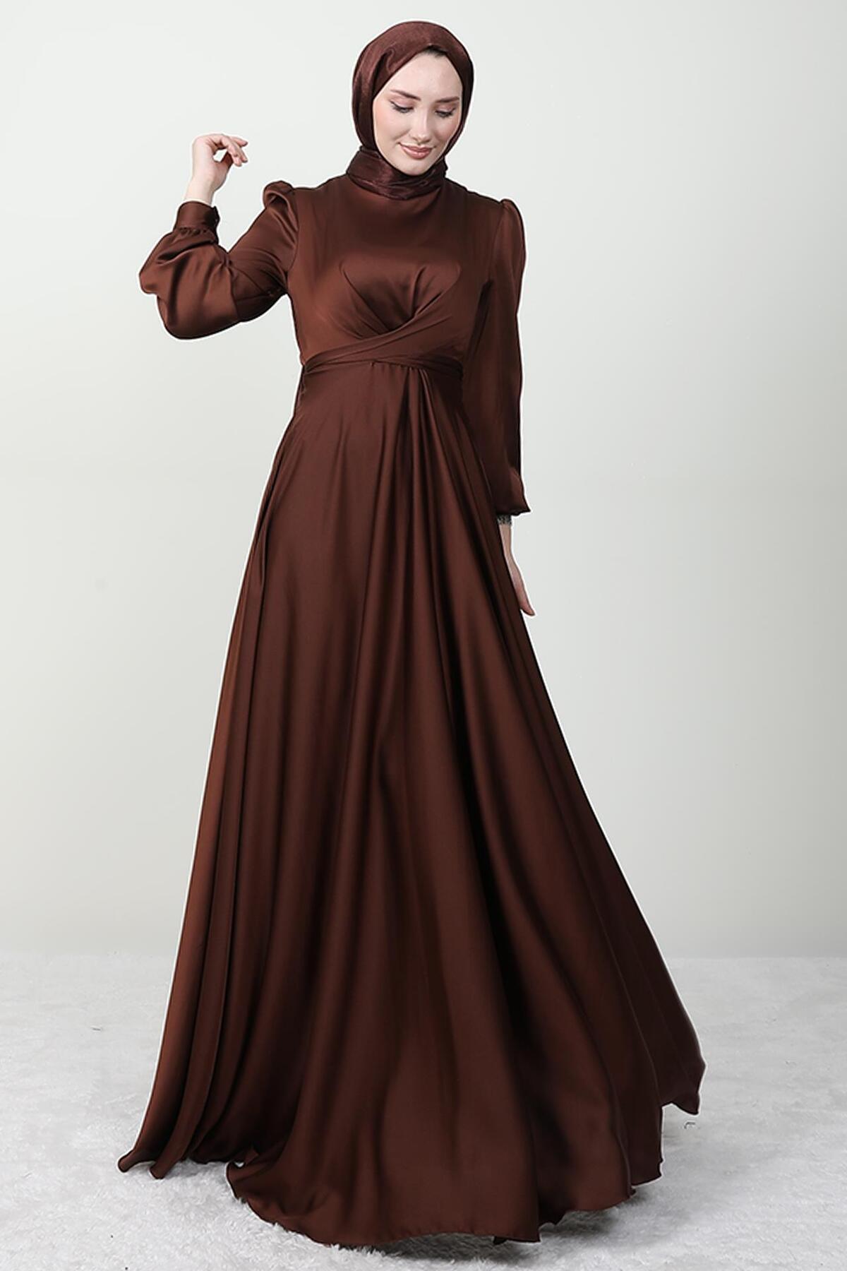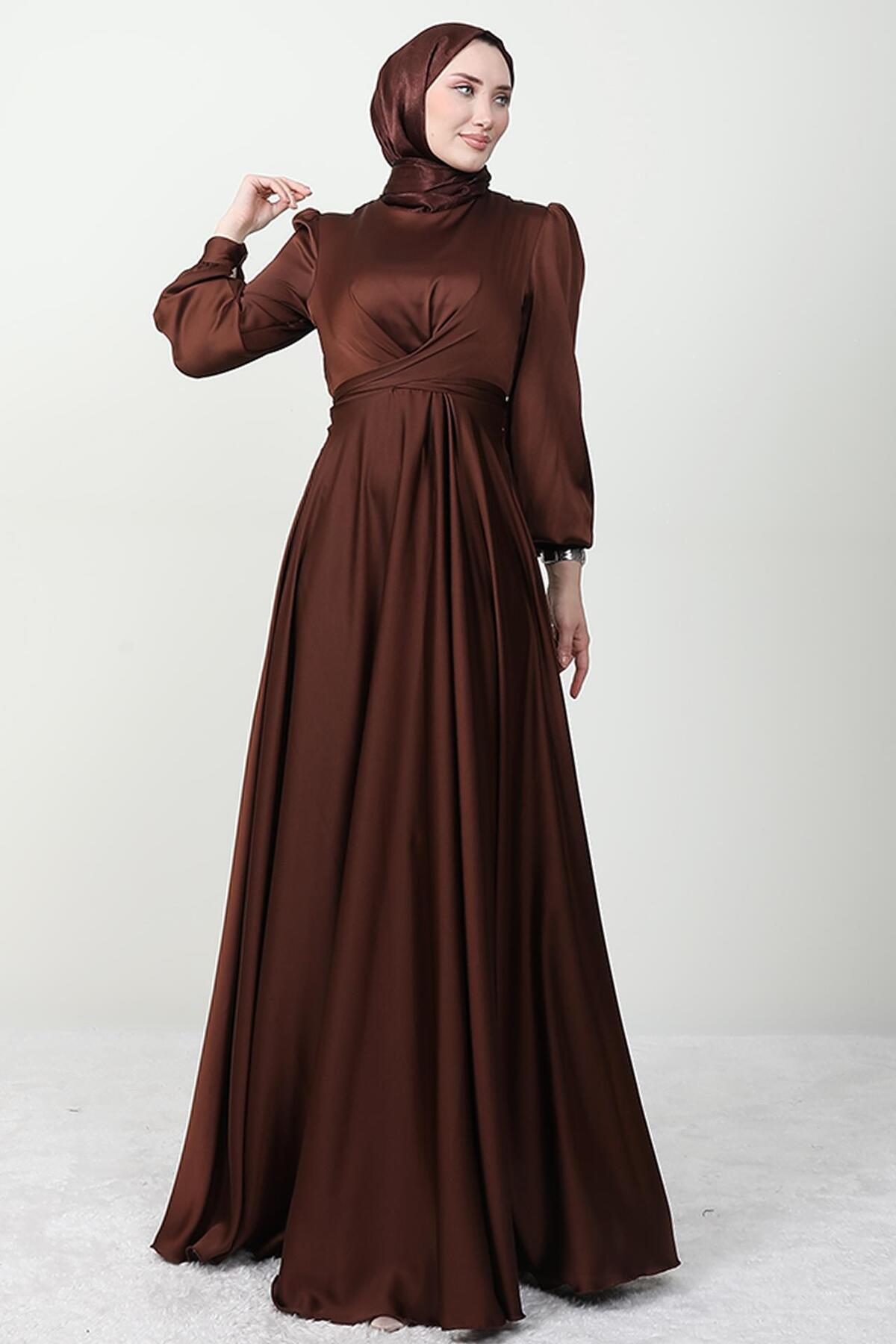 Uzun kollu tasarımı ile tesettür giyim koleksiyonuna şıklık katan abiye, her mevsim rahatlıkla tercih edilebilir